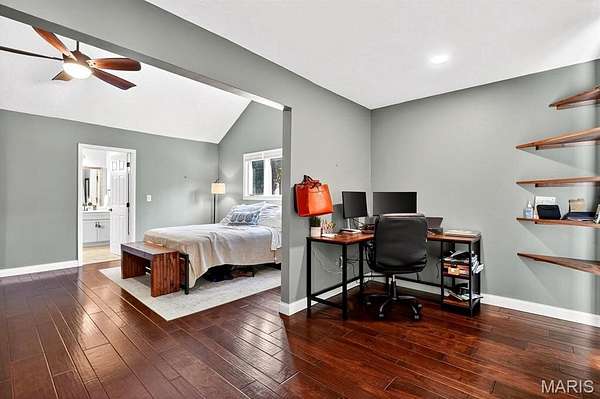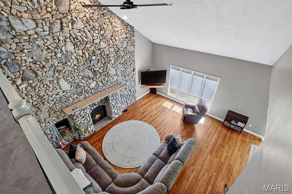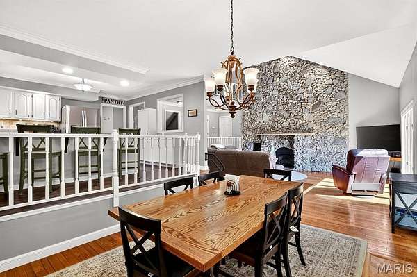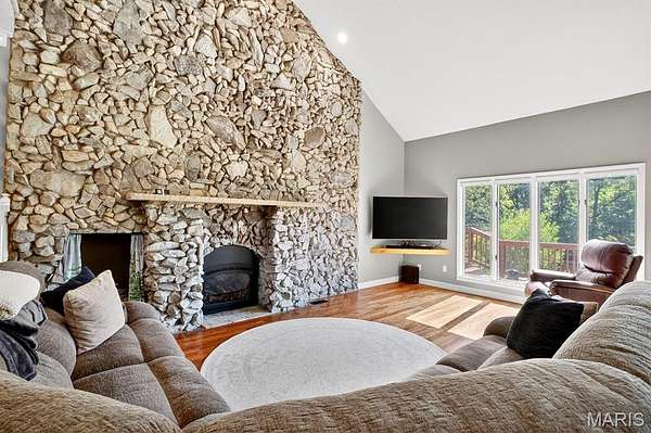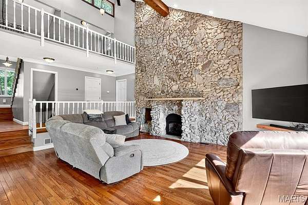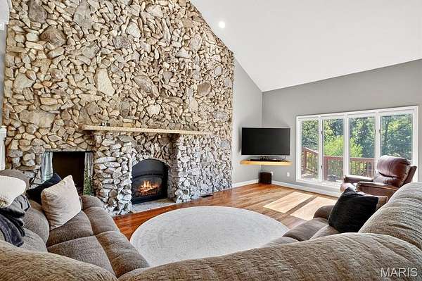 Est $3,909/moEscape to a private retreat, in this 1.5 story home on 6.24 acres w/well stocked lake. 4 bed/4 bath across 4,446 sq feet. Vaulted living room includes stunning floor to ceiling stone gas fireplace. Main-level master suite offers deck access, an electric fireplace, and a spa-like bath with double sinks, soaking tub, and separate shower. Upstairs features a loft, two bedrooms, Jack & Jill bath, and a balcony. The finished basement includes a bedroom, full bath, family room with brick wood-burning fireplace, and a bar with granite countertops. New shed on site! New roof & many more updates!