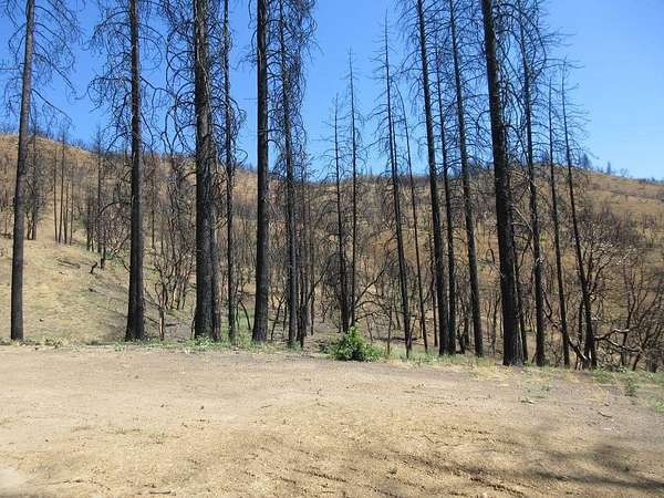 Est $816/moGorgeous views from this fairly level building pad in in the middle of 40 acres of "black forest". Land was burned over in the McKinney fire, but has been released by Siskiyou Wildfire. It's pretty stark now, but you can see it once was beautiful and will be again. Well appears to be undamaged and septic has been buried, but should still be there. Condition of connections unknown and distance to power also unknown, but probably at the antenna shed where the road forks.
