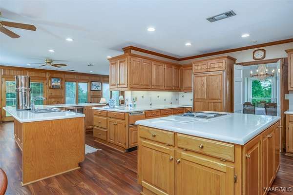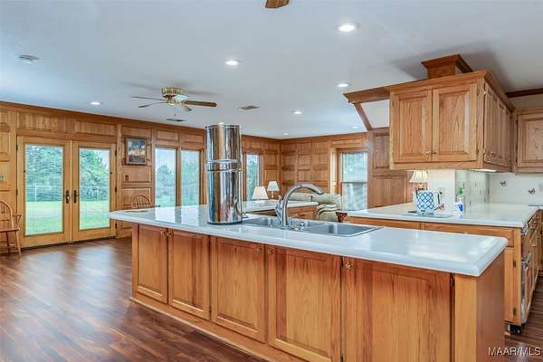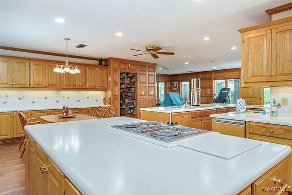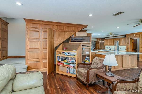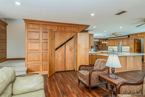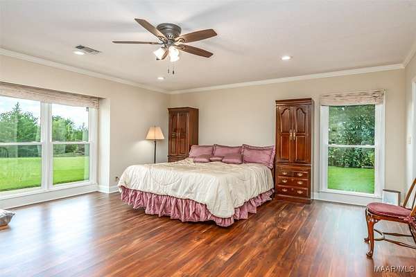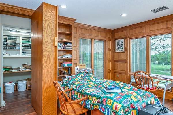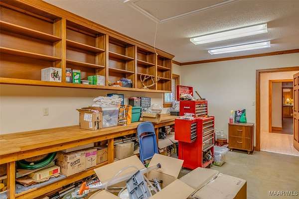 A TRUE COUNTRY ESTATE BUILT TO LAST WITH ROOM TO ROAM AND SPACE TO GATHER! If the Pioneer Woman and her family were moving to Alabama, this is where they would hang their hats. Down a picturesque winding, tree-lined driveway just 25 minutes from Baptist East Hospital, no expense was spared when this 5300+/- square-foot home was built (and later improved and expanded). Step inside to discover expansive living spaces filled with natural light and thoughtful updates including extensive custom-built-ins, fresh paint, new carpet and flooring, and a brand-new roof installed in 2024. The heart of the home is the unbelievable chef's kitchen, outfitted with high-end appliances and ample custom food prep and storage options. It opens up to a gathering room and office area (with a hidden safe/storage room) boasting a wall of windows overlooking the peaceful views. Enjoy cozy evenings in the spacious den anchored by a wood-burning fireplace and two walls of custom-built-ins. Formal entertaining is a breeze in the gracious dining room and separate living/music room. Private spaces include three generously sized bedrooms and 3 full bathrooms downstairs. The upstairs hosts a huge fourth bedroom or bonus room that includes a built-in daybed and a unique train/lego table, on a pulley, ready to delight little engineers. Need more space for projects, storage, and/or animals? This 12+/- acre estate also features a heated and cooled workshop off the 3-car garage, a separate workshop/barn with four stalls, a fenced horse pasture, a garden area, a greenhouse, and even an outdoor shower for rinsing off after a day in the garden or barn. Additional acreage available for purchase (up to 59 acres total)