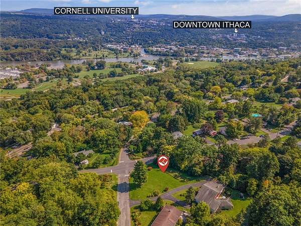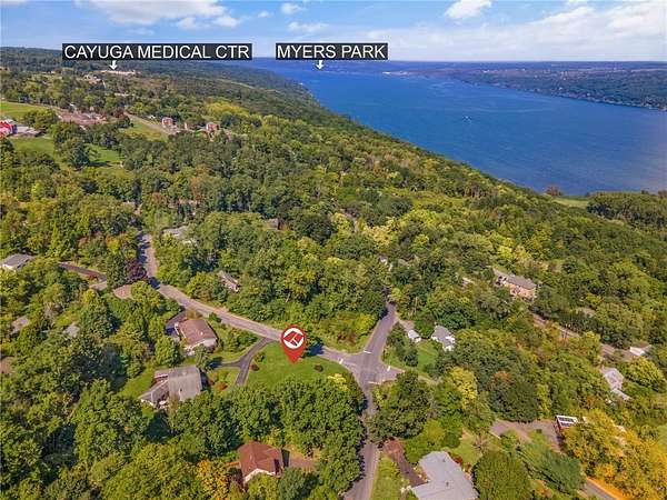 Est $766/moBring your dreams of having the right house in the right location. If you have been looking for the perfect lot to build on look no further. This eastern facing lot is slightly sloped with some flat areas facing the lake partial lake views, and broader winter Lake views. Lovely corner lot situated in an established neighborhood that is close to everything Cornell Ithaca college downtown Ithaca and very close to the hospital as well. The house rendering shown on the land is for illustrative purposes only and is not included in the sale. The rendering of the home and driveway is meant to depict potential future possibilities for the property and should not be interpreted as a planned or existing structure.