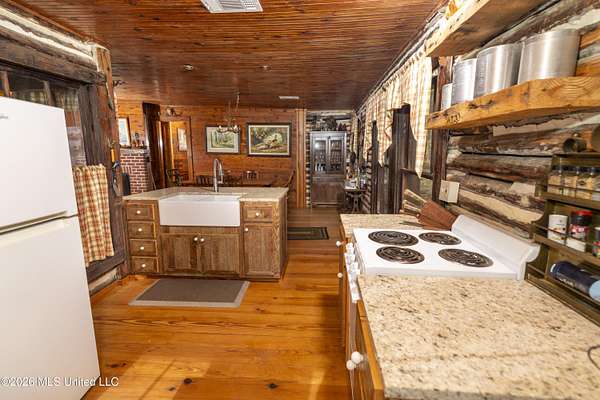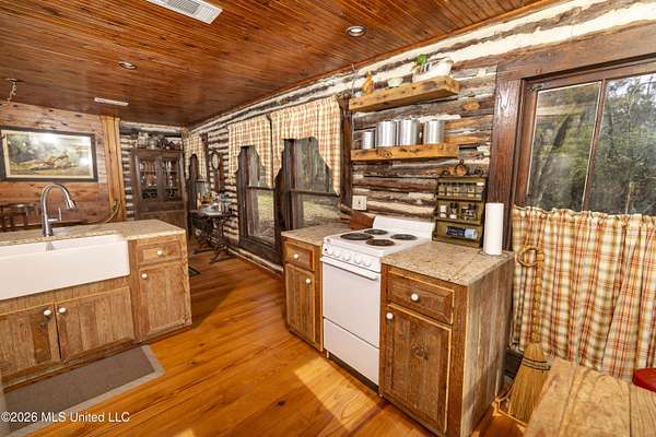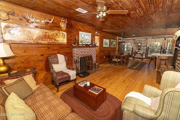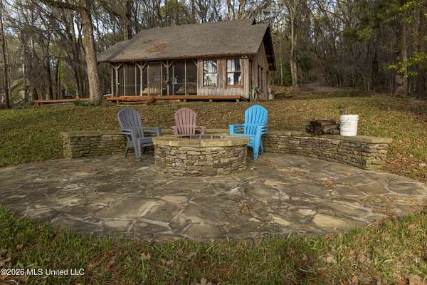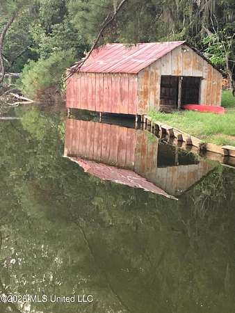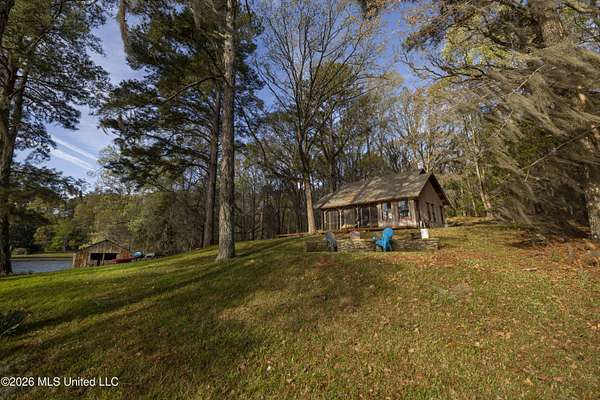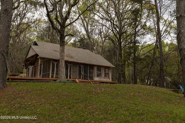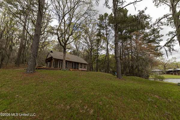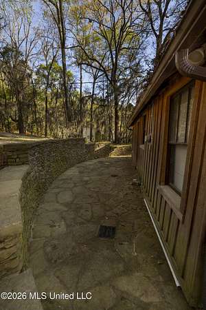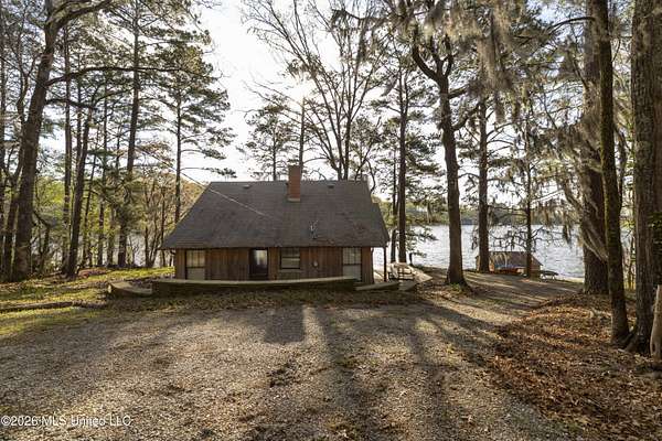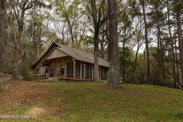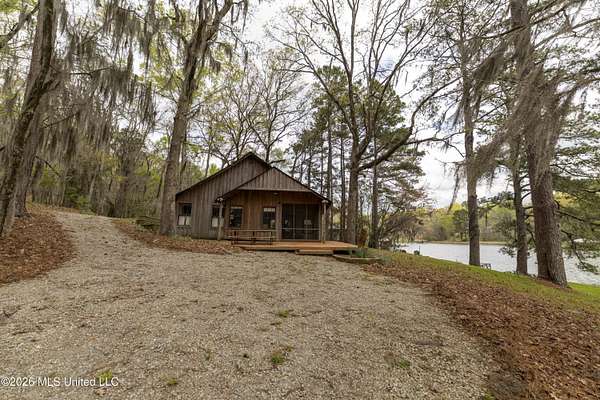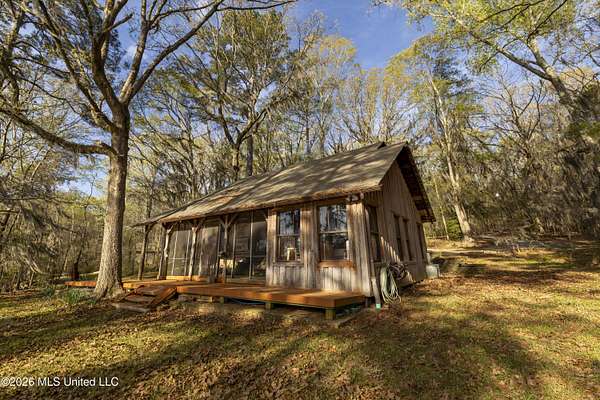 Gluckstadt exit head west to hwy 463, Cross over 463 and go 1/2 mile past Gus Green/Chapel Hill intersection. Looke for the yellow signe signifying a left turn is ahead, that is Cedar Hill Lane. Its a gravel 1 way road. Go 1/4 mile. FOR SALE sign at the drive entrance and a blue bottle tree signifying arrival. Limestone drive winds its way to the cabin, park where you wish.