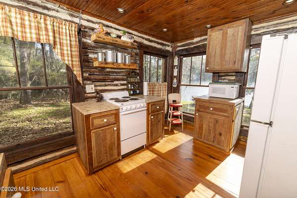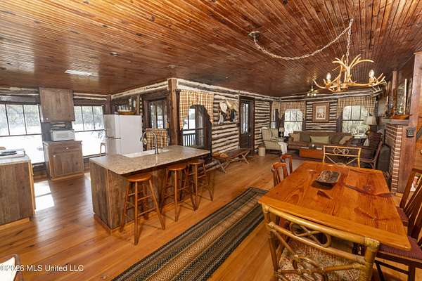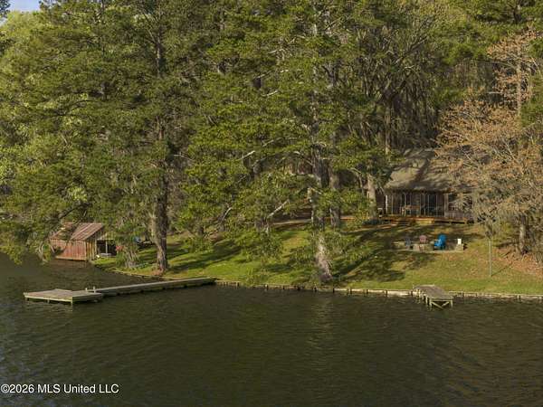 Tucked away beneath the swaying moss and cathedral ceiling of oaks is a 2 bedroom 1 bath cabin on Cedar Hill Lakes most private drive, Cedar Hill Lane and on Cedar Hills smaller lake. literally minutes from Madison allows the owners to take advantage of afternoon visits to week long stays, yet be close enough to handle any business requiring immediate proximity to the city. This Fully functional cabin is outfitted with all the modern amenities of a full kitchen, granite counter top, HVAC, screened in porch, and everything a modern home should have all encased inside a early 1940's log cabin. True rustic feel, with mortar chinked logs, wooden floors, and views of Cedar Hill Lake you would see in a Hallmark movie!. Entry to the property is from Cedar Hill Lane and is a limestone driveway that meanders through the woods just like you pictured. Easy access in and out is provided by a double circular drive with the second circle offering parking for multiple vehicles. The owner parking pad will drop you at the cabin and the first thing you will notice is the large wooden deck encompassing over half the cabin with plenty of room for the picnic tables and Adirondack chairs you will want to put on it. A new feature is the stone retaining wall and rear stone patio with drainage and footings to provide decades of protection and private little patio for the owners, with rear door access to the cabin. The front porch is screened with plenty of room for gathering and the deck extends out from it for more open space with stairs leading down to back yard. In the back yard you will see the matching stone fire pit and circular stone patio for those chilly nights by an outdoor fire. Just a few steps further to the 23.5 acre lake and you can launch your boat to fish, or just fish from the pier. An older shorter pier is right next to the main pier as well. The lake side of the property is facing south and will provide nostalgic sunrise and sunset views. This property is truly a work of art.
