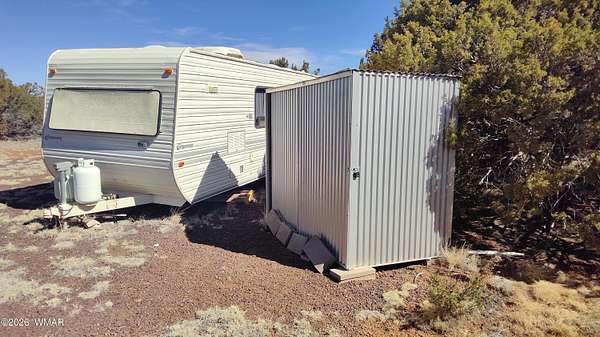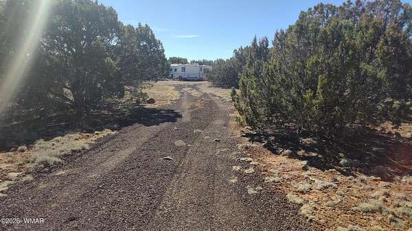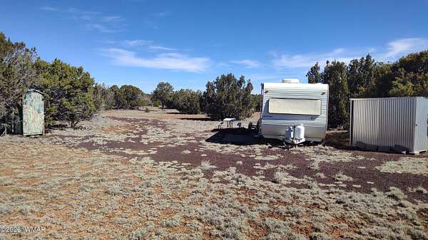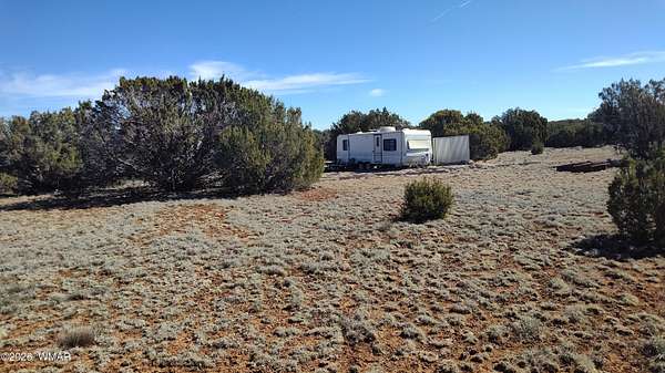 Vacant land consisting of two combined parcels totaling approximately 2.33 acres in Apache County, located on a maintained road. Corner lot with fairly level terrain and native pinon, juniper, and scrub vegetation. Off-grid property with no utilities currently on site. Shed conveys with the sale. Camper conveys at no value. Porta-john, firepit, and existing improvements convey. Rural setting with frequent deer and elk sightings, approximately 20 miles from town. Buyer to verify zoning, access, utilities, flood plain status, parcel configuration, and suitability for intended use. Additional parcel is 107-04-418 This is two parcels being sold together. Parcels are 107-04-417 and 107-04-418