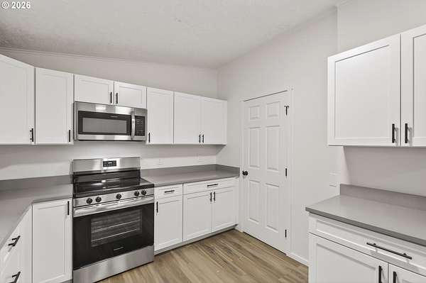 - Free Standing Range, Microwave, Pantry, Range Hood, Stainless Steel Appliance