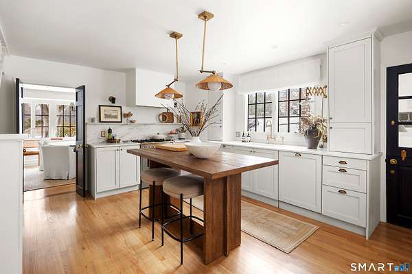 Quietly tucked away on ~2.5 private acres in the highly coveted Cranbury neighborhood, this stunning colonial estate offers an unparalleled lifestyle. Located just minutes from the heart of Norwalk, Westport, New Canaan and Wilton this one-of-a-kind home is a rare gem. Completely transformed inside and out by a visionary designer and architect duo, this home has been featured in countless magazines - and it shows. Every inch has been reimagined with intention, craftsmanship, and elevated style. This meticulously updated residence boasts 4 spacious bedrooms, with 3.5 stunning bathrooms, providing luxury and privacy. Every detail has been considered - from the beautifully appointed baths, to the luxurious chefs kitchen (with the most incredible Imperial Danby Marble), to the whole new house systems, all the way to the brand new roofs on home & structures + the finest lighting fixtures... just to name a few! Step outside to your own private oasis. Manicured grounds, mature plantings, and lush flower beds create a storybook setting. The fully updated sparkling pool, brand new bluestone patio and classic cedar split-rail fencing complete this idyllic retreat. Multiple outbuildings provide exceptional flexibility - ideal home office, artist studio, gym, hangout space, or potential pool house. The possibilities are endless. This home is the perfect combination of luxury, comfort, & convenience, and it's ready for you to move in & enjoy!