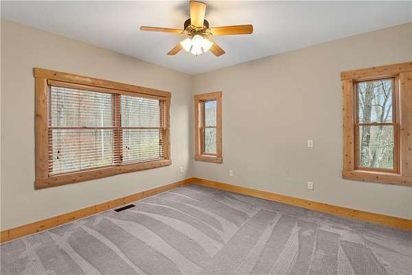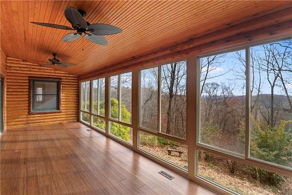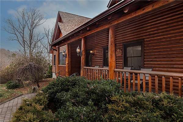 Imagine your own private mountaintop retreat on 8.5 acres in the midst of all SC's gorgeous hiking and waterfalls!! This pristine log cabin set in the woods overlooking a valley feels like you don't even have neighbors. But in reality, you're just 20 min from downtown Travelers Rest and all it has to offer! You drive up the mountain on private neighborhood roads past ponds, undisturbed natural beauty, and a few hidden homes to your covered rocking chair front porch, facing Glassy Mountain. Your front door opens to a two story living area with a soaring rock chimney and hearth with a wood stove. The upstairs windows bring natural light into the space all day long, and the loft area provides extra living space in the same area. Behind the living room, a kitchen with beautiful custom wood cabinetry shows off new granite countertops. A half bath nearby adds convenience for your guests. The breakfast area opens into a large sunroom with breathtaking winter views of the valley nearby and Paris Mountain in the distance, that brings nature inside all summer long. A screened porch off the sunroom is perfect to enjoy our temperate SC springs and falls. Back inside, the main level also features a large den, two bedrooms, and two full baths. Every room has a perfect view of the surrounding land through high quality Andersen windows. The primary suite on the main level has a jetted tub, separate shower, double vanity with new granite, and a walk in closet. Upstairs off the loft is a third bedroom, third bath, and an additional spacious office/bonus room. Outside, there is a two car attached garage for storage, a detached shed for projects and wood storage, and a beautiful firepit just up the granite outcropping. Surrounding lands are other large neighborhood lots and Camp Old Indian. Your home here should be protected from nearby development for many years. Come sit a spell and picture your life here! Your stress will lower every time you look out the window or breathe deeply of the fresh mountain air. With a well and septic already in place, all you'd need to add to be completely off the grid is solar. Recent updates include new roof (2022), HVAC (2021), new well pump and tanks (2022), paved drive (2022) and more! Located just 8 min to North Greenville University, 30 min to Greer or Hendersonville, and 45 min to downtown Greenville. Let's take a look!