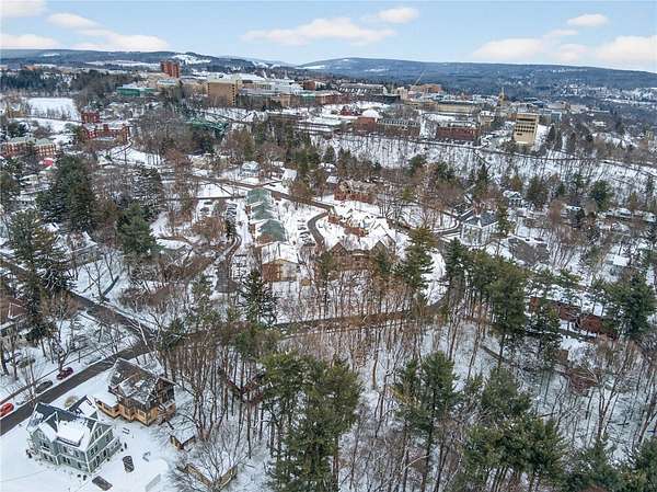A unique opportunity to acquire approximately 2.5 acres in the highly sought after Cornell Heights Historic District, adjacent to Cornell University and within the City of Ithaca. With frontage on Highland Road and Ridgewood Road, the property offers excellent accessibility and layout flexibility. Zoned RU Residential University, it permits single family, two family, multi dwelling, cooperative, rooming or boarding house, and other university related housing options, subject to City approvals. Future construction requires review by the Ithaca Landmarks Preservation Commission to ensure compatibility with the areas early twentieth century architecture and natural topography. The bowl shaped, sloping parcel provides privacy and a dramatic setting, enhanced by mature trees and established landscape elements, including a rare American chestnut. An adjacent duplex is also available R1663151, offering potential assemblage. A rare opportunity in one of Ithaca's most established neighborhoods.