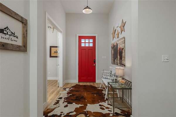 Spacious Modern Farmhouse on Acreage - No City Taxes & No HOA & Private Well--so No Water Bill! 152 Katy Ranch Drive is a beautiful home situated on a spacious corner lot in the serene outskirts of Weatherford. This thoughtfully designed residence blends modern farmhouse charm with practical features and abundant space inside and out. Inside is an inviting open floor plan where a large kitchen island with a deep farm sink is the centerpiece of the home. The kitchen is a chef's dream, complete with custom cabinetry, quartz counters, solid backsplash, a designer vent hood, and large walk-in pantry. The kitchen flows seamlessly into the expansive living area, highlighted by a stylish shiplap fireplace with a modern electric fireplace insert, perfect for cozy evenings and entertaining guests. Just off the entry, a dedicated study with double doors provides a private work-from-home space. The mudroom with built-in lockers and bench is ideal for bookbags and shoes, and the oversized utility room offers additional built-in cabinets and space for a freezer or second fridge. The private primary suite is a true retreat, featuring a tray ceiling, plantation shutters, and a spa-like ensuite with soaking tub, dual vanities, separate shower, and a huge walk-in closet. Three additional bedrooms share a well-appointed full bath. Enjoy low-maintenance living with laminate flooring throughout the main living areas and primary bedroom, and rest easy knowing there's no HOA, spray foam insulation, no city taxes. Outside, the property boasts a top rail pipe fence with no-climb horse wire, dual gated access for a future workshop or barn site, and a beautifully manicured yard. The extra-long, oversized garage easily accommodates large Texas sized trucks and offers room for storage. Relax or entertain on the oversized covered back porch, complete with a ceiling fan. Discover the perfect balance of peaceful country living with the convenience of everything Weatherford has to offer.