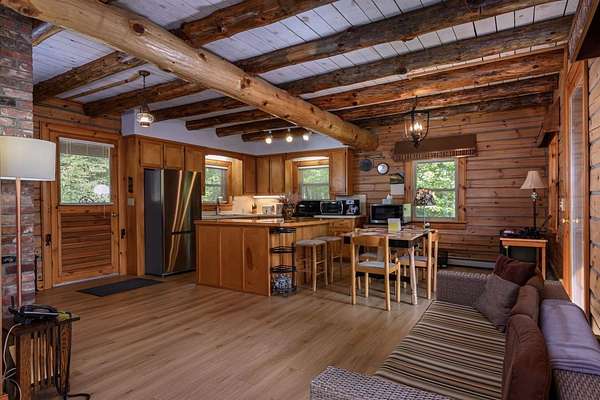Delayed Showings - OPEN HOUSE Sat 9/20 from 10am to noon. Log Home Retreat on 4.7 Acres in Westminster, VT. Tucked back on a quiet road, is this welcoming 2-bedroom, 2-bath log home set on 4.7 private acres. A circular driveway brings you to the home, where a broad front porch invites you to slow down and take in the surroundings. Inside, you'll find new flooring throughout the lower level, while both upstairs bedrooms open to their own private balconies. A screened back porch makes the perfect spot for summer evenings, overlooking the property's natural beauty. This location offers the best of southern Vermont living: just 5 minutes to Saxtons River and Vermont Academy and 15 minutes to Bellows Falls and Putney. (I-91) travel and commuting are easy without sacrificing the peace and quiet of a country setting. A perfect balance of charm, updates, and convenience ? ready to welcome its next owner.