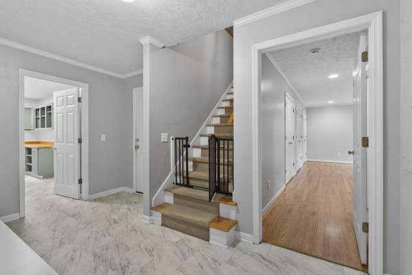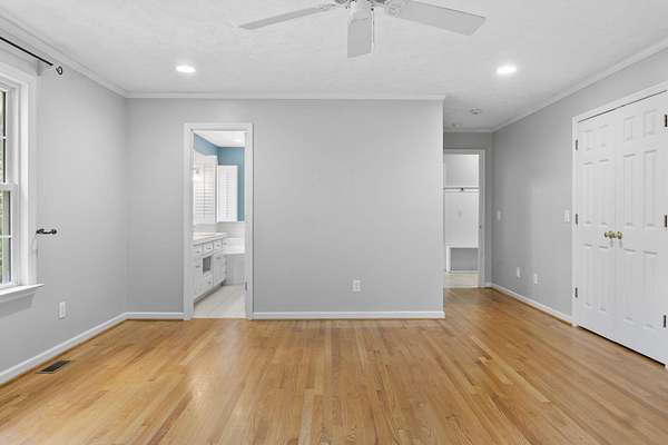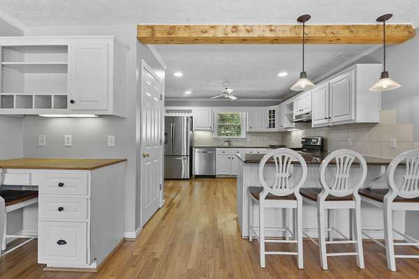 - Bedroom On 1 st Floor, Ceiling Fan(s), Eat-In Kitchen, Primary Downstairs, Snack Bar, Solid Surface Counters, Walk-In Closet(s)