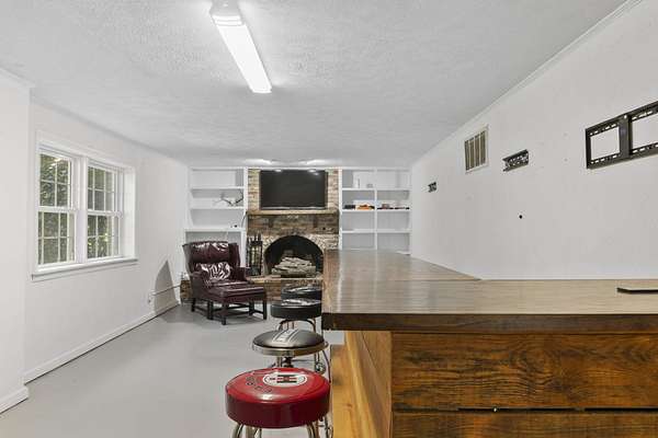 The ultimate private retreat! Tucked away on 8.5 serene acres with a stocked pond teeming with bass, catfish, bream, and carp, this property is a rare find. Enjoy peace, privacy, and outdoor oasis all in one breathtaking setting. Step onto the rocking chair front porch and take in the quiet. Inside, bright, open living spaces blend comfort and connection with a thoughtful layout made for entertaining or unwinding. The main-level owner's suite offers pond views, a spacious ensuite, and four closets. Two fireplaces-one on the main level and one in the walk-out basement-add warmth and charm throughout. The home also features a formal dining room, mudroom, laundry, and an updated eat-in kitchen with stainless steel appliances. Out back, a screened-in porch overlooks the pond-perfect for morning coffee, wildlife watching, or sunset views. Two flowing streams and deer stands make this a dream for hunters and nature lovers alike. An 18x30 powered workshop is ideal for projects, hobbies, or storage, and an additional 12x20 shed conveys. Whether you're fishing, hosting, or simply enjoying the stillness, this property delivers the lifestyle you've been dreaming of. With numerous updates and unmatched tranquility, this one is truly a must-see estate!