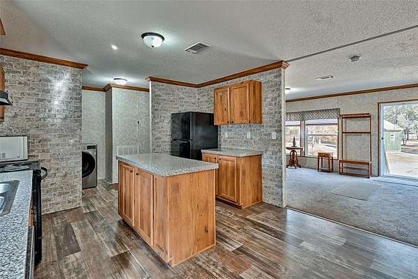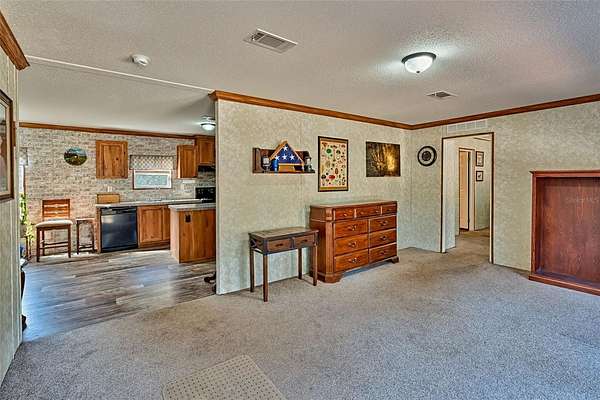 Inside, the 3-bedroom, 2-bath double-wide offers a well-designed split floor plan with the primary suite on one end and secondary bedrooms on the other, providing both comfort and separation. The main living areas flow easily, making the home feel welcoming and functional for everyday living or hosting guests.