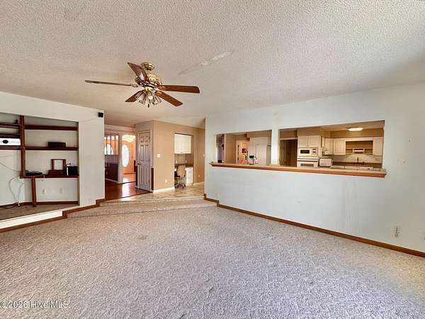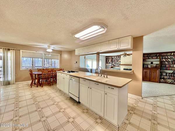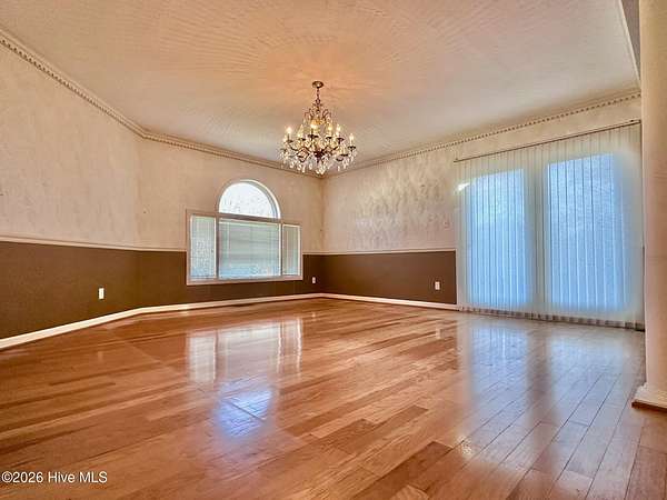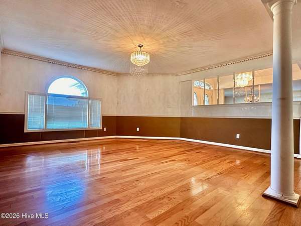Discover a rare opportunity offered below tax value with this expansive home. Boasting 3,828 heated sq. ft. on the main level and an additional 2,213 sq. ft. of space upstairs- equipped with ductwork, vents, and registers, this home is ready for the right buyer to unlock its full potential. The main level includes a spacious primary suite with a gas log fireplace, two large walk-in closets with built-ins, a walk-in shower and a jetted tub. Two additional bedrooms and two full baths are also located on the first floor. The main level features a kitchen with an island, a gas range and gas cooktop, breakfast nook, pantry, and abundant cabinet storage. The den has a fireplace with insert and built-in book shelves. Formal living room and flex room also located on main level. Upstairs adds 2,213 sq. ft. of entertainment including built-in bar, game room with pool table, additional flex room, and a full bath with shower insert. Heat pump for this area is not currently functioning. With updates, this could add significant square footage and value. Home sits on just under 2.5 acres with no HOA and offers a partial water-view from the back deck and screened in porch.