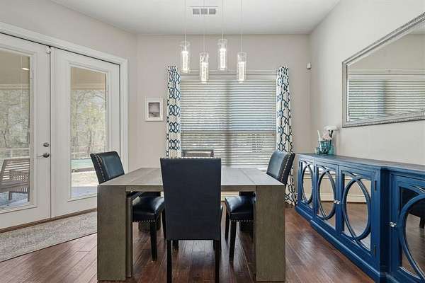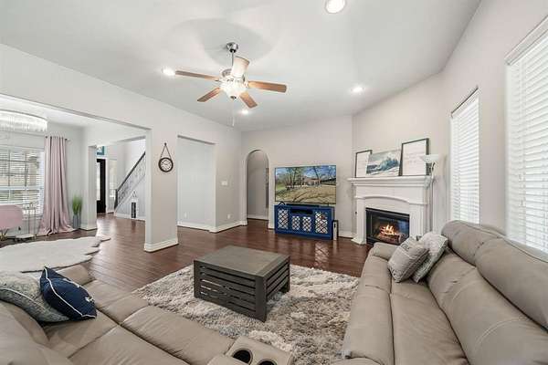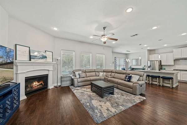 Situated on 1.63 acres and backing to a peaceful greenbelt, this thoughtfully designed 4-bedroom, 3.5-bath home offers the perfect blend of privacy, functionality, and outdoor living. With 3,038 square feet across two stories, the home features a well-planned layout with elevated finishes and meaningful upgrades throughout.