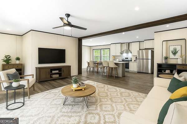 Brand new 2025 construction in Ellijay! This beautiful 3-bedroom, 2-bath one level home sits on a private and usable 1.91-acre flat lot with a nice yard, 2 porches, no HOA and no dues, giving you space and freedom. The home offers 1,568 sq ft all on one level, built on a permanent foundation, and features tall 10-foot ceilings throughout for an open and airy feel. Inside, you'll enjoy a large open floor plan with durable vinyl flooring. The big kitchen includes a huge center island, white custom cabinets, stainless steel appliances, a dining area, and a spacious walk-in pantry. The living room offers a large, open space perfect for entertaining and relaxing. On the left side of the home, you'll find the large oversized master bedroom with its own primary bathroom featuring a soaking tub, stand-up shower, double vanity sinks, a toilet, and plenty of storage. On the other side of the home, there is a large laundry room, two additional bedrooms, and one full bathroom, providing privacy for guests or family. Enjoy the outdoors with both a large front deck and a large back deck, perfect for relaxing, grilling, or taking in the peaceful surroundings. Conveniently located less than 10 minutes to Downtown Ellijay and close to Clear Creek Middle School, this home offers quiet living while staying close to dining, shopping, and entertainment. Great cell service, great power, easy access and close to town, brand new survey, brand new septic and well, on a permanent foundation, just move right in!