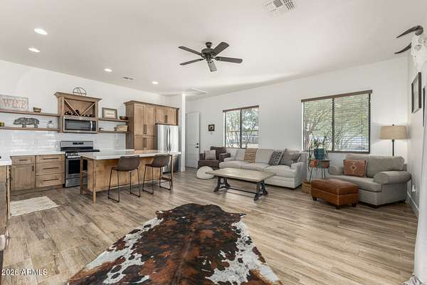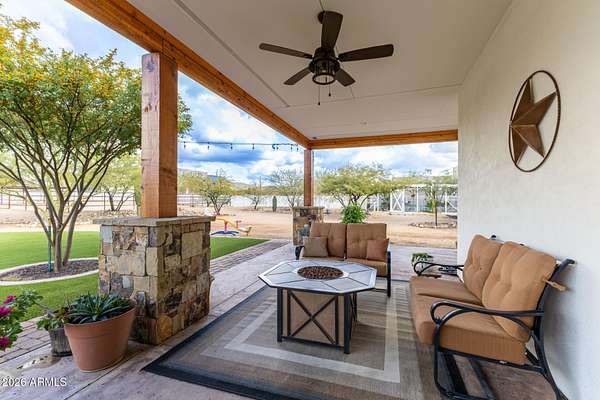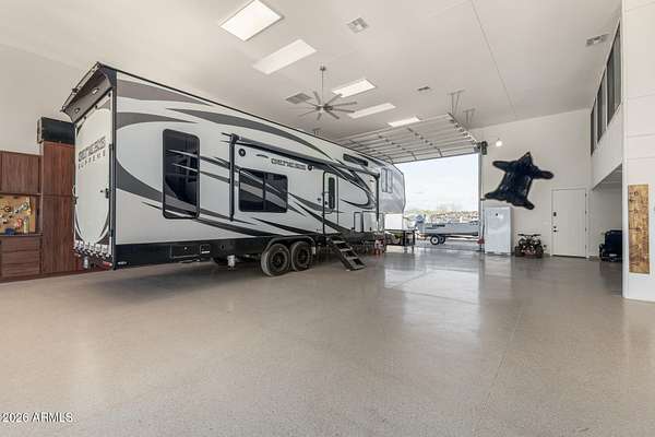 Welcome to a rare gated New River estate designed for those who live life without limits. Situated on 2.25 pristine acres, this exceptional property offers a pull-through RV garage (4100+sq.ft.) )private casita ,office, making it ideal for travelers, multigenerational living, or a serious work-from-home setup. The home is equipped with owned solar, keeping energy costs low while supporting a modern, sustainable lifestyle. Four-car garage plus the massive RV garage provide unmatched storage for toys, trucks, and tools. Equestrian enthusiasts will appreciate the horse setup with room to ride, train, and enjoy Arizona's wide-open beauty right from your own land. This is more than a home-it's a compound built for freedom, flexibility, and function, all just minutes from outdoor recreation.