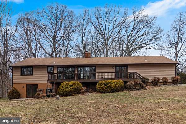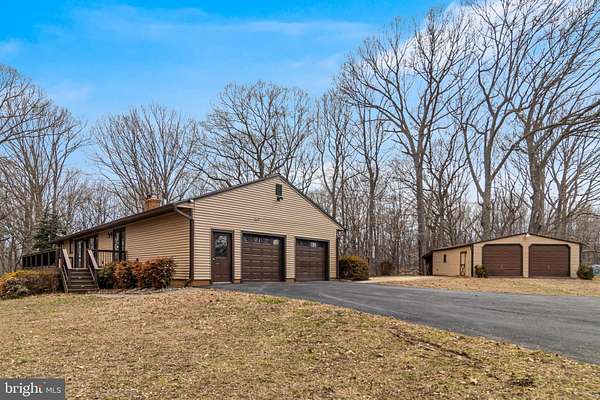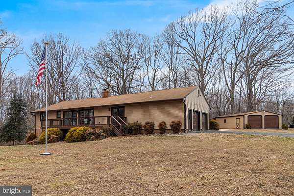 If you've been searching for space, privacy, and the freedom of no HOA, this is it! Set on 5.5 expansive wooded acres, this one-level home offers room to spread out both inside and out. With a 2-car attached garage and a 2-car detached garage, there's plenty of space for hobbies, equipment, storage, or all the toys that come with Southern MD living. Inside, the main level features vaulted ceilings and an open, oversized kitchen and living area. Multiple sliding glass doors flood the space with natural light and lead to a newer Trex deck that spans the entire length of the home, perfect for entertaining or enjoying the peaceful wooded backdrop. Hardwood floors run throughout (including under the living room carpet) and brick-accented wood-burning fireplaces on both levels add warmth and character. The kitchen is well-appointed with an island for seating, stone backsplash, black granite countertops, and a newer dishwasher. The main floor offers four bedrooms and two full bathrooms, including a spacious owner's suite with double closets and a walk-in shower. Downstairs, the fully finished basement provides exceptional flexibility, ideal for multigenerational living or potential rental income. With its own private entrance, full kitchen, bedroom, and full bathroom, the lower level functions as a true separate living space. Major updates include a roof replaced in 2016 and a heat pump that is only a few years old. Rarely do you find this combination of acreage, garage space, finished lower-level living, and no HOA restrictions. If you've been waiting for room to live the way you want, this property delivers.