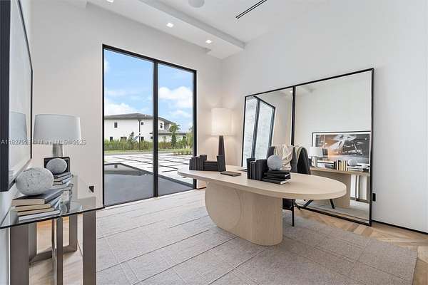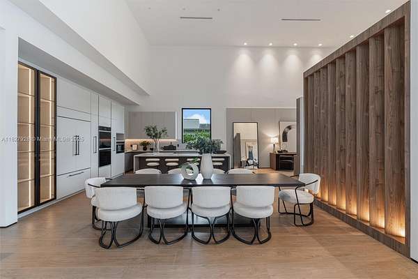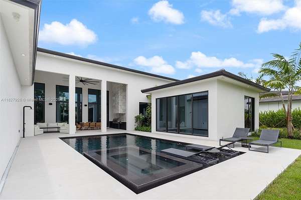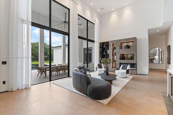 A bold statement in luxury living, this custom-built estate blends warm contemporary design with high-end sophistication. Rich wood accents, black matte finishes, & dramatic textures come together to create an atmosphere that’s moody, elevated, and effortlessly elegant. Thoughtfully designed for refined living and entertaining, the home features expansive interiors, soaring ceilings, and seamless transitions to the outdoor spaces. A modern-style pool, covered summer kitchen, and lush landscaping complete the private oasis. Located in a gated enclave of just 12 custom estates, the community is beautifully spread across 18 acres, offering privacy, serenity, and an exceptional setting for elevated living. Move-in ready, this residence is represented by accurate, true-to-condition imagery.