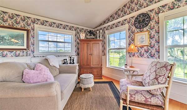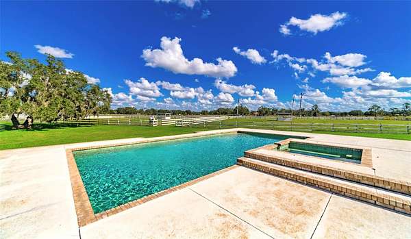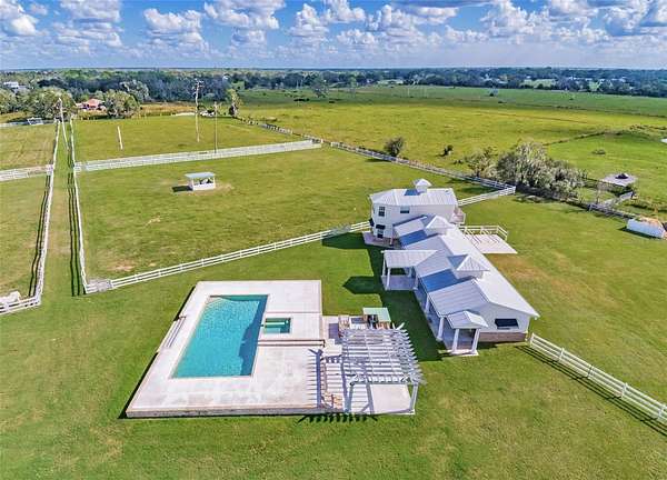 Just under 10 Acres, 2 Apartments house styles with spacious room for renovations. Guest apartment generating $4k plus monthly with Air bnb. Equestrian Estate with amazing sunsets & the LUSHEST grass you will find in Florida! This property features a total of 2 Residences totaling over 6000 sq ft. under roof, 2 block horse barns with 7 stalls and a gorgeous 40x20 pool, spa. The main residence is a lovely 2 bed up, 2 bath block home/metal roof with an attached oversized 31x21 three car garage/workshop and porte-cochere. This area could easily be finished off for more main-level living space adding 650 more to the main residence which features European charm with marble counter tops, stainless appliances, wood floors, tile floors, custom woodwork, pedestal sinks, a claw-foot tub, walk-in shower and breathtaking views of the property. There are 3 stalls and a breezeway at the main residence that could remain as stalls or be finished off into more living areas. On your way to the main barn, the courtyard has a custom pool, spa, deck, grilling area with kitchen and pergola. The main barn features a metal roof, 4 stalls an aisle, 3 wash racks with Hot & Cold, a finished tack/laundry room under air with a full sink. The air-conditioned finished office has, 2 baths, a kitchenette, wood floors, custom floors, custom wood work, pedestal sinks and a breezeway to the barn. The property is fenced, cross-fenced, has 2 run-in pole barns, 20x8 shed that matches houses out back and a 8x10 feed shed. 4-5 paddocks, water in each paddock, a parking pad, manure and shavings storage. You really must see this property to appreciate it. Horse READY & Income Potential GALORE! Easily Rent stalls and/or Airbnb with an Ideal Location just 20 miles to the Ocean!