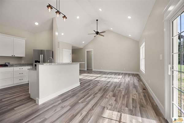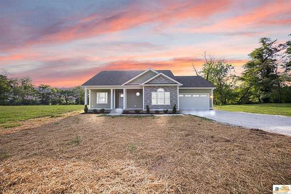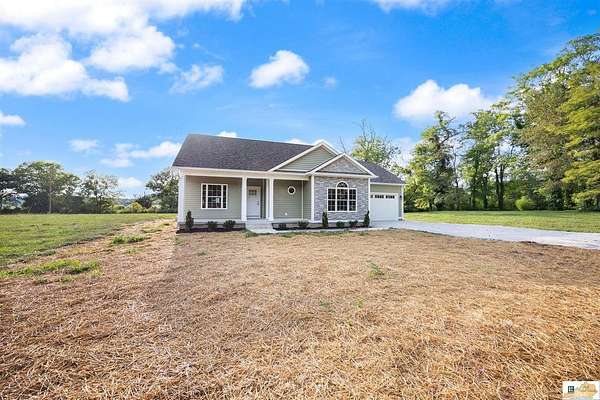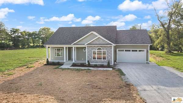Welcome to your new sanctuary nestled on a generous 1.811 acres, conveniently located between the charming towns of Horse Cave and Munfordville. With access to I-65 near by. This custom-built 1,457 sq. ft. home offers the perfect blend of comfort and style. Step inside and be captivated by the open-concept living, dining, and kitchen area -- an ideal space for both everyday living and entertaining. The chef-inspired kitchen is a true highlight, featuring stunning granite countertops, modern appliances, and an abundance of custom cabinetry to meet all your storage needs. Retreat to the spacious and bright primary suite, a true haven of relaxation, complete with his-and-her walk-in closets providing plenty of room for your wardrobe. The primary bath offers ample counter space for a spa-like experience. Two additional well-appointed bedrooms and a second full bath complete the living quarters. For added convenience, a separate laundry room provides seamless access to the attached two-car garage. With its thoughtful layout, quality finishes, and peaceful setting, this property offers privacy without sacrificing convenience. Don't miss your opportunity to make this beautiful home your forever retreat.