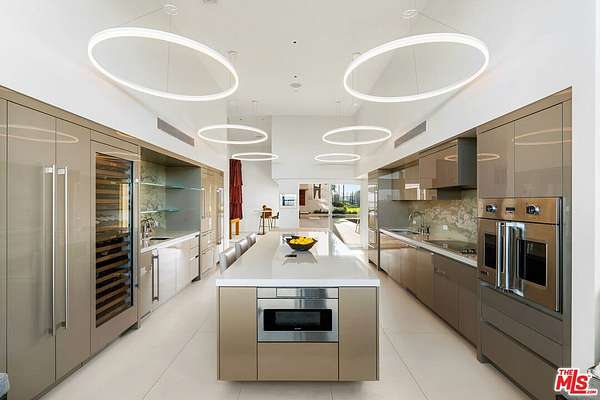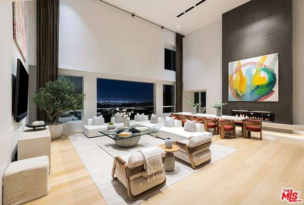 Originally designed in 1986 by renowned architect Ted Tanaka, this world-class architectural marvel underwent a five-year structural remodel and addition completed in 2021 under the direction of Clive and Julie Bridgewater, along with landscape architect Pamela Burton. Crafted for a young collector family seeking the ultimate modern view estate to showcase art in a family-oriented setting, it serves as a hub for major art installations and esteemed art-world gatherings. Tucked behind two sets of iron gates at the end of a long driveway within a cul-de-sac, this extraordinary private 3.2-acre knoll boasts uninterrupted city, ocean, and reservoir views, enveloping the estate in electrifying vistas from every room inside and outside. With a lit tennis court offering arguably the most breathtaking views in town, two elevators - one for the main home and one for the guest house, and outdoor events two kitchens, one for the main floor for intimate breakfasts and family meals, and another strategically positioned with walls of glass opening to the outdoor barbecue area, for family weekend fun and large-scale events. Additionally, a theater with wine room and soda fountain, game and billiard room. Within the sprawling flat grounds a spectacular oversized pool, full barbecue/pizza kitchen, as well as covered outdoor areas and decks throughout the property. This light-filled home embraces the love of art and family values, offering an unparalleled lifestyle experience.