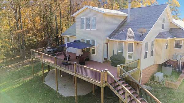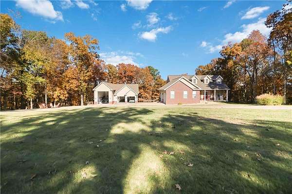 $15,000 SELLER CREDIT Discover exceptional value at this 4-bed, 2 full & 2 half baths estate on 5.15 serene, partially wooded acres in Point at Falls Hollow, minutes from Beaver Lake & downtown Rogers. Spacious 3,643 sq ft home with 2,125 sq ft 3-car garage (14' door, 16' ceiling-perfect for boat/RV or car lift). Three levels feature high ceilings, abundant light, and open flow between living, dining, and family areas. The kitchen boasts granite counters, stainless steel appliances, ample cabinetry, and a center island. Main-level primary suite offers dual closets (one cedar-lined) and a remodeled walk-in shower. Upper level: 2 beds + full bath. Finished walk-out lower level includes 4th bed, full bath, rec space with new carpet, bonus room, and storage. Includes 20kW whole-house generator, large deck, patio, circular drive, and mature landscaping. Ideal for privacy and entertaining.