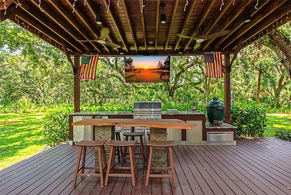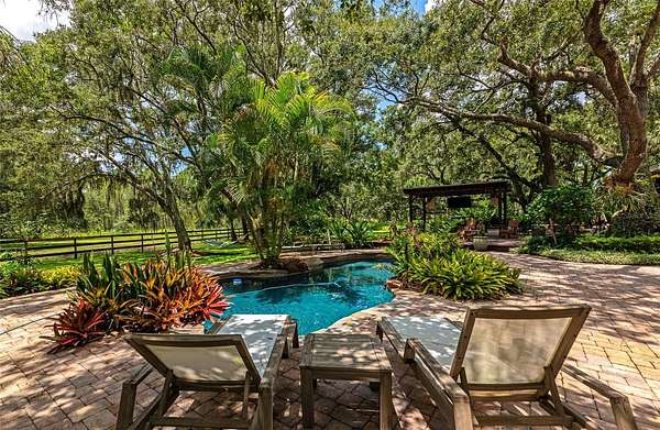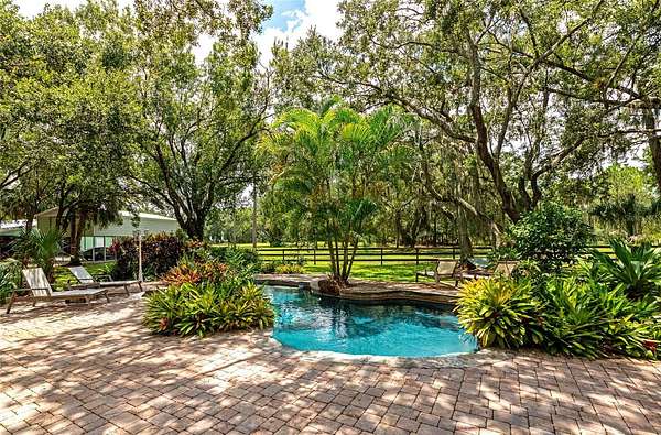 Rare 5 acre private estate with NO HOA or deed restrictons! An Equestrian Oasis Just Minutes from Lakewood Ranch! Saddle up for the perfect blend of horse country serenity, peaceful country living and suburban convenience. This one-of-a-kind 5-acre estate is the closest acreage property to Lakewood Ranch, offering the freedom, room, privacy without sacrificing access to top-tier shopping, dining, and entertainment. Tucked beneath a canopy of 100+ year-old grandfather oaks, this 4-bedroom, 3-bath home spans over 3,104 sq. ft and includes dual home offices (or a 5th bedroom)--ideal for multi-use living and remote work with room to roam. A private asphalt driveway leads you through lush, shaded pastures, setting the tone for the tranquil country setting that awaits. Inside, enjoy bamboo flooring downstairs and tile upstairs. The heart of the home a renovated 2020 kitchen features custom hardwood cabinets, granite countertops, and stainless steel appliances, perfect for hosting gatherings. Step outside into a true outdoor retreat, where a freeform pool, covered outdoor kitchen, paver patio, Sonos surround sound, lighting, and fire pit come together to create a dream space for both relaxation and celebration. Whether you envision an equestrian property, owning farm animals, building a workshop, storing equipment, or simply enjoying wide open space, this property provides the freedom and flexibility most neighborhoods can't offer. Horse enthusiasts will be drawn to the 30' x 30' center-aisle barn with 4 stalls and tack room thoughtfully positioned for convenience and comfort. The rear of the property is fully fenced and includes a professional-grade round pen, lush grazing pastures, and oak-shaded paddocks that offer natural cooling and beauty. A scenic pond adds to the peaceful atmosphere, and there's a separate RV/boat metal-framed structure with a metal roof that's ideal for horse trailers, RV or boat storage, or equipment. Schedule your private tour today!