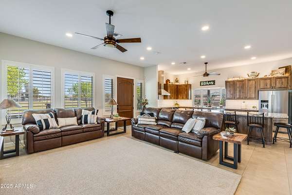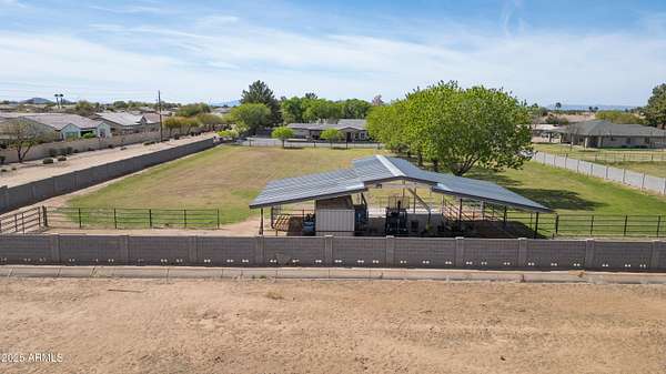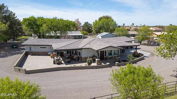 Beautifully Maintained Privately Gated Horse Property in S. Gilbert on a 2.179 Acre Irrigated Lot w/Mature Lndscape, County Island, Block & Pipe Fencing. Spacious Open Floorplan, Custom Hickory Cabinetry throughout, Granite,Counters, Dbl Ovens, Stainless Steel Appliances, Tile Floors, Butlers Bar, Decorative Barn & Alder Doors. Huge Master, Dressing Room Style Closet, Spacious Bath w/72''soaker tub, Walk-in Shower. Expansive Covered Wrap Around Patios w/ Metal Soffits & Large Plank Tiles, Natural Rock Accents, Exterior Fans. Please See Document Sec. for a List of ALL the Valuable Amenities this Property has to Offer. PROPERTY CAN BE SPLIT- (EAST ACRE ) CONTACT LISTING AGENT TO DISCUSS PRICE W/OUT ADDL LAND. Don't MISS the OPPORTUNITY to Make this your FAMILY HOME!