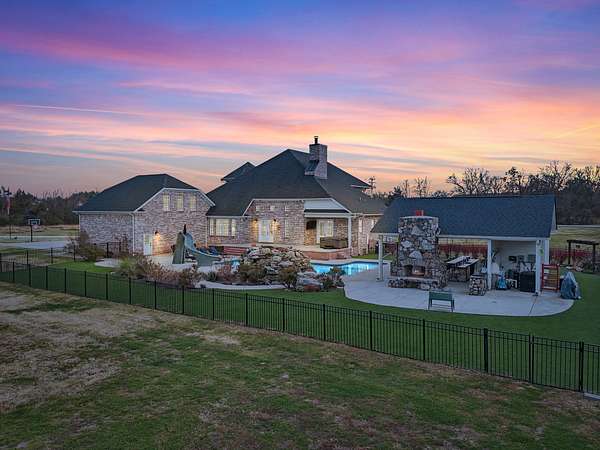 This exceptional property sits on 8 picturesque acres featuring a serene creek, private camping site, and wooded trails. The resort-style backyard is a true showpiece, complete with a heated saltwater pool and an impressive covered outdoor pavilion outfitted with a stone fireplace, full kitchen, pizza oven, and bath--perfect for entertaining year-round.