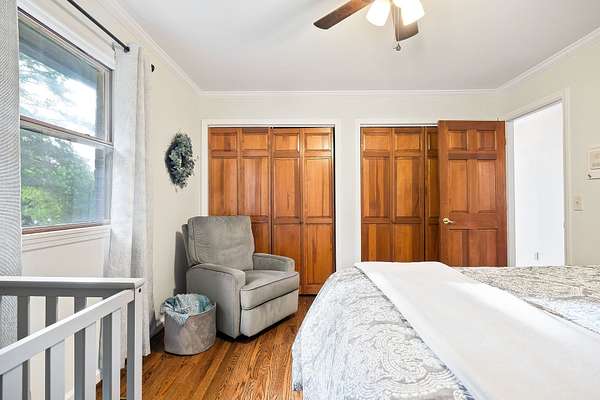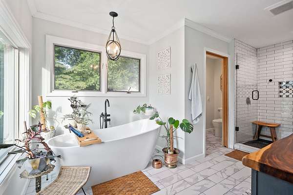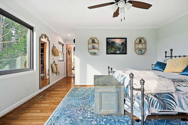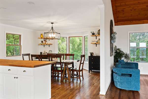 Fully renovated in 2022 and topped with a brand-new roof in 2024, this 4-bedroom, 2-bath home blends modern design with timeless craftsmanship. The open-concept floor plan flows across site-finished hardwood floors and showcases a contemporary kitchen with custom cabinetry, a sleek range hood, stainless steel appliances, a 48" gas cooktop, and double electric ovens--perfect for cooking for a crowd. Crawl space is encapsulated.