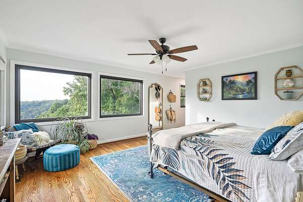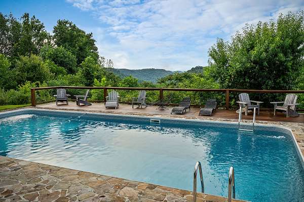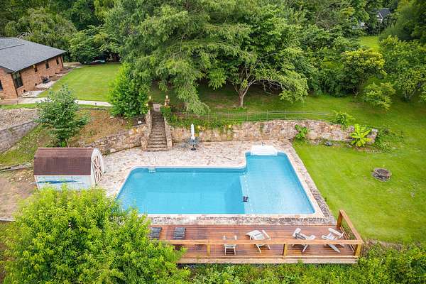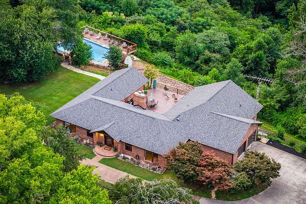 Step outside, and you'll find the ultimate backyard oasis: a massive 50,000-gallon pool (designed for scuba training) with lighting for night swims under the stars. Entertain on expansive decks with views that go for miles, or explore the property's fruit trees, pecan and walnut trees, fenced garden, greenhouse, and multiple fenced-in areas ideal for pets or small farm animals.