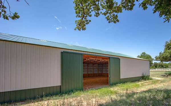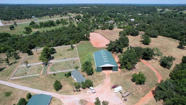 Trainer's Delight. Professional Reining, Cow Horse, Cutting or Barrel Facility on 84 lush acres. 28 stalls allow for main trainer's use plus potential of leasing to other trainers. All horse stalls have mats. 2 Outdoor pads 300' +/- long and one indoor arena perfect for fence work in all weather. 3 barns plus hay storage for up to 600 bales. Hot/cold wash-rack, tack rooms, equipment rooms and bathroom. Morton indoor arena built in 2024 with oversized doors for ventilation and a screenings base and river sand footing. 10 paddocks each with freeze-proof faucets. All structures have had new roofing material installed in last 3 years. The modern 3500 sq ft 3 bed 3 bath owners/trainer's home boasts slate floors and large windows. The assistant trainer's bunkhouse features 2 bedrooms and 1 bath. Located on paved roads just minutes from downtown Norman and the University of Oklahoma. Convenient to Interstate 35 and only 40 minutes to Will Rogers World Airport in OKC. 30 minutes to OKC Fair Grounds. Situated between Fort Worth and Oklahoma City where all the action is!