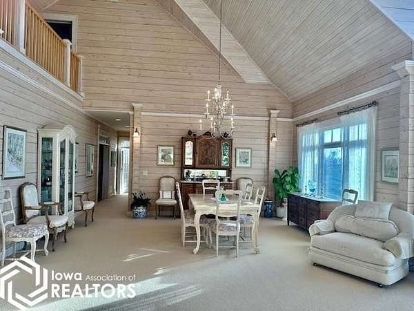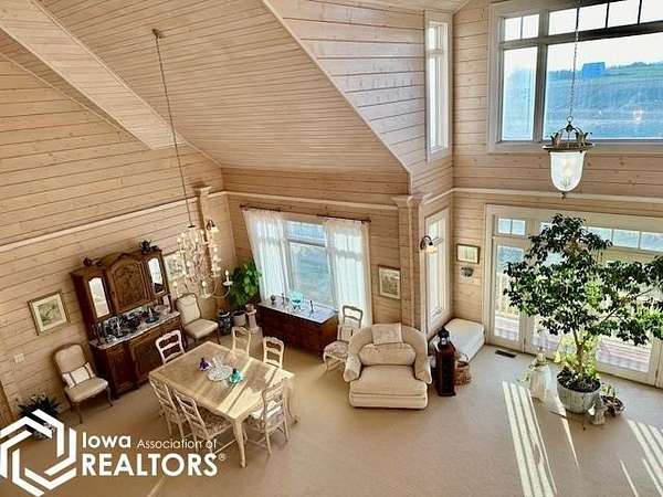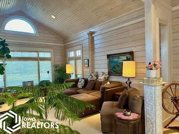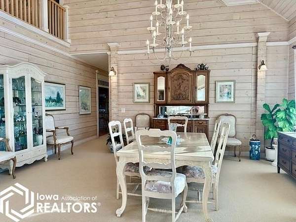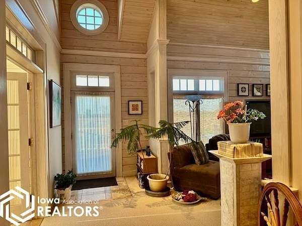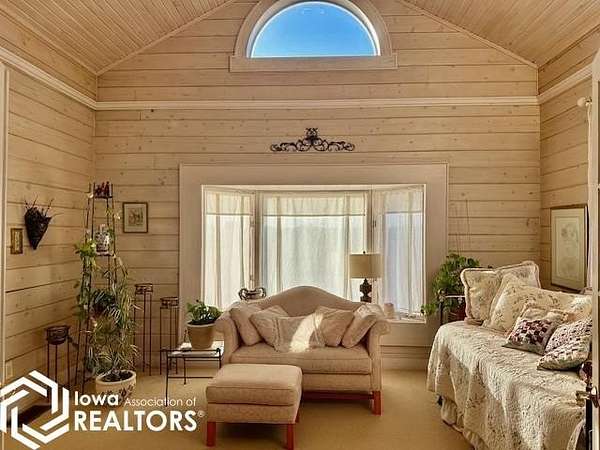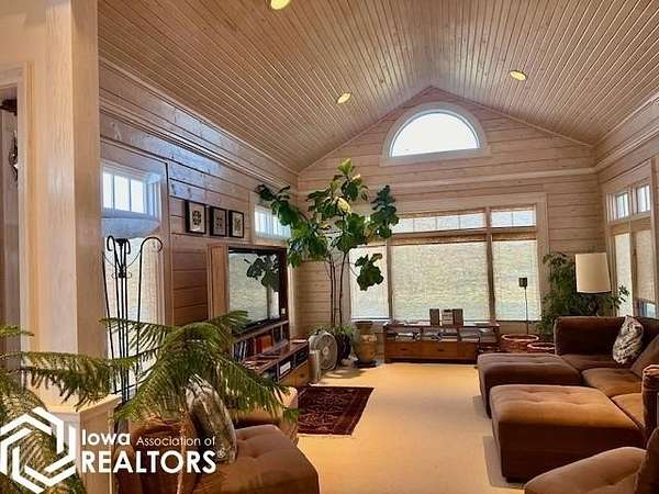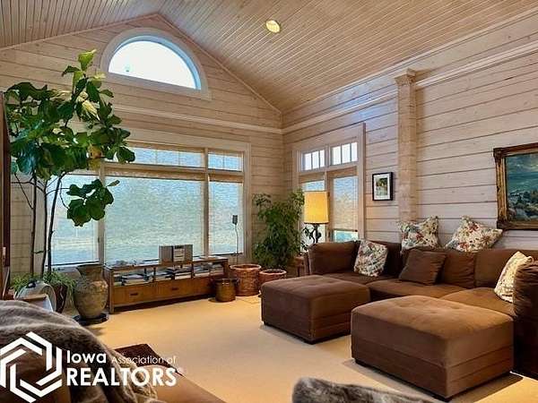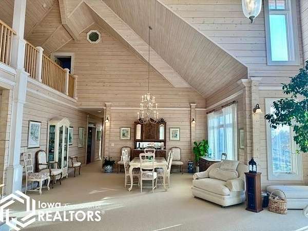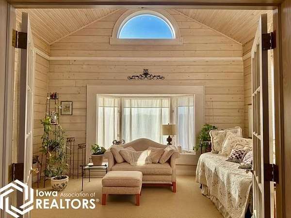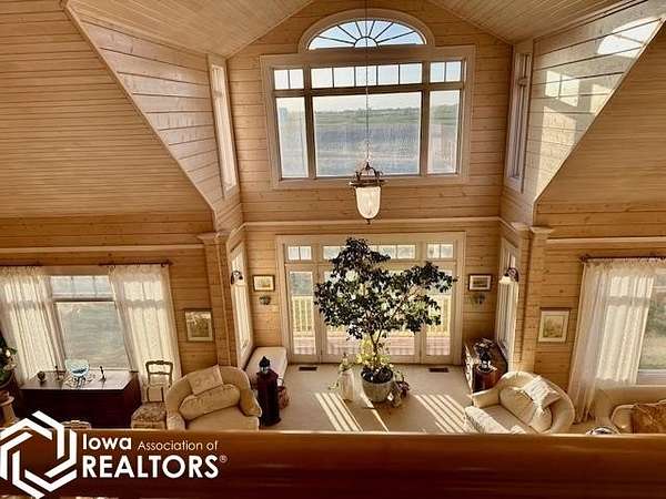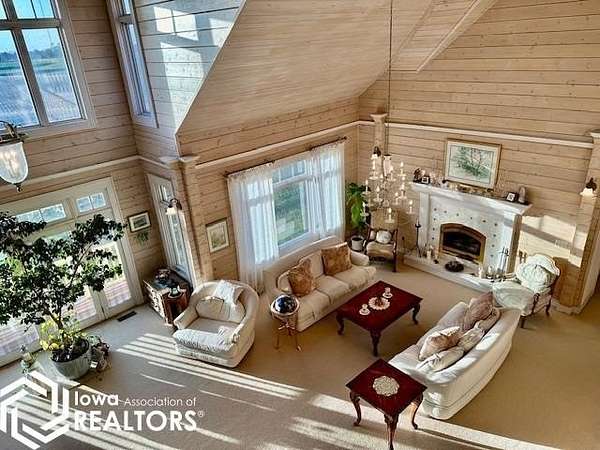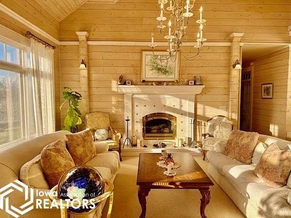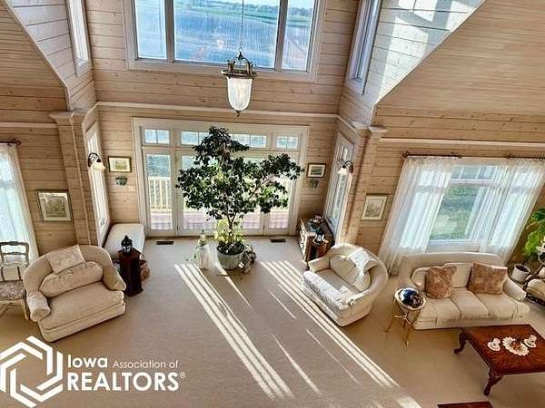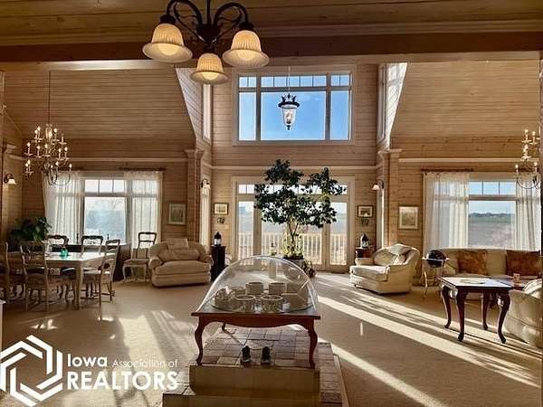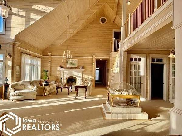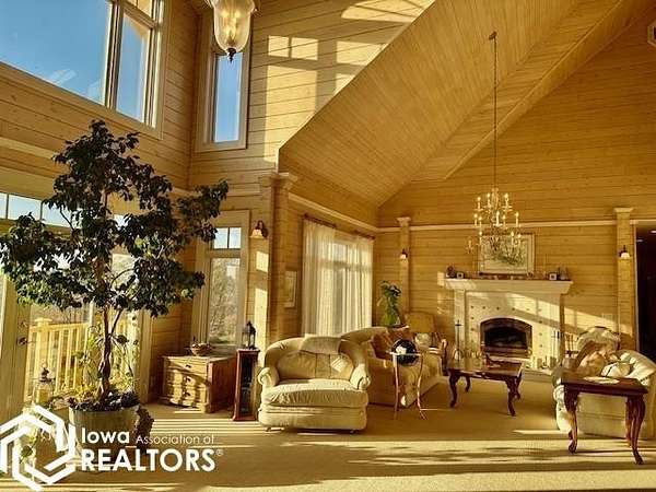 This Maharishi Vastu log home offers elegance and country living combined, located on 3 acres of land only 10 minutes from the Fairfield Square. There is over 5000 square feet of comfortable living space with vaulted ceilings in an expansive living room and a spacious kitchen and Dining Room. Three ample-sized bedrooms on the main level include a primary bedroom ensuite with a full bath and office room, and 2 additional bedrooms, one with full bath access, and one with a 1/2 bath. A Den and bonus/meditation room complete the main level. The upper level offers an open office area and 2 bedroom suites with their own ensuite bathrooms. The lower level has space galore with an additional, very large family room, and lots of side rooms for creative, potential, usable space. This elegant home is a "Must See" !!