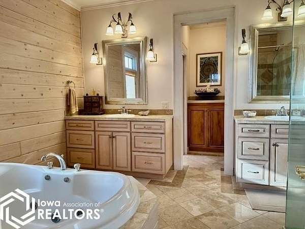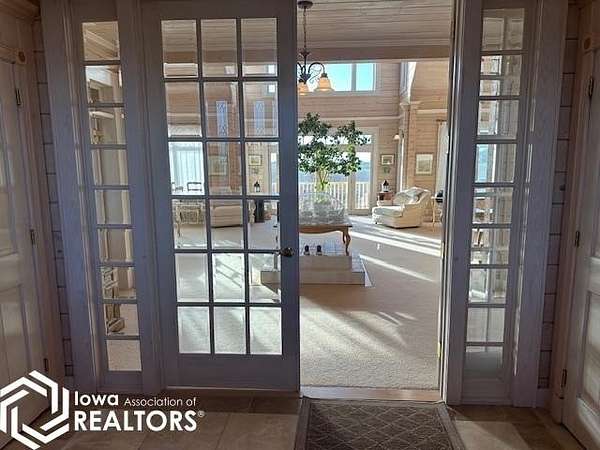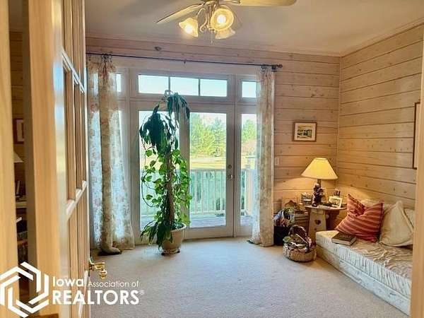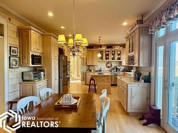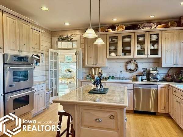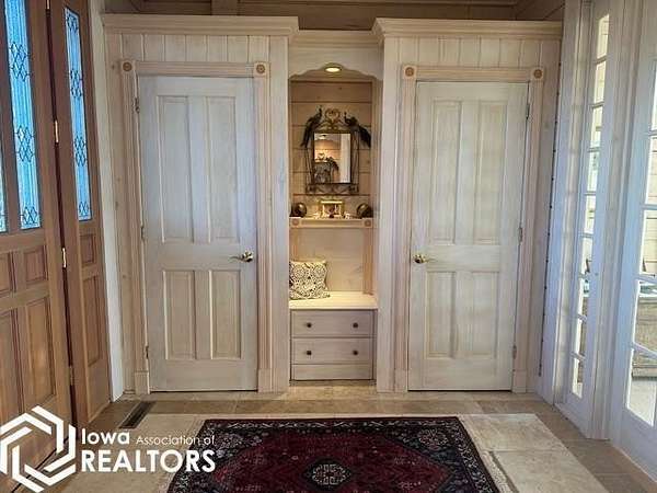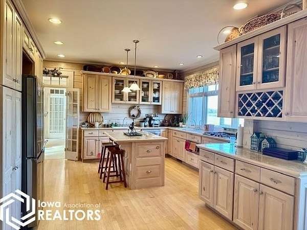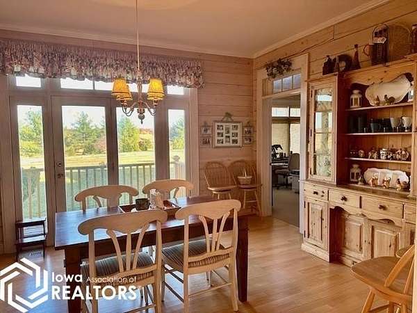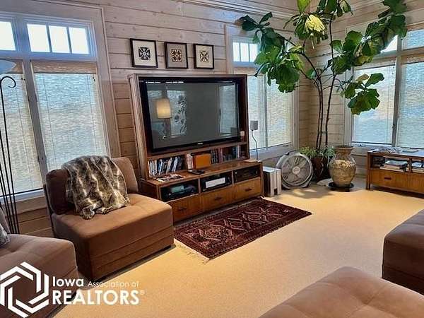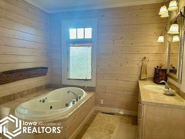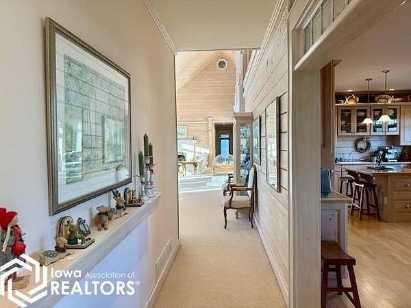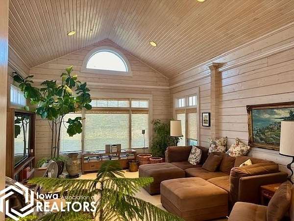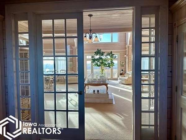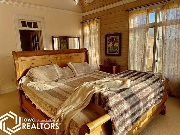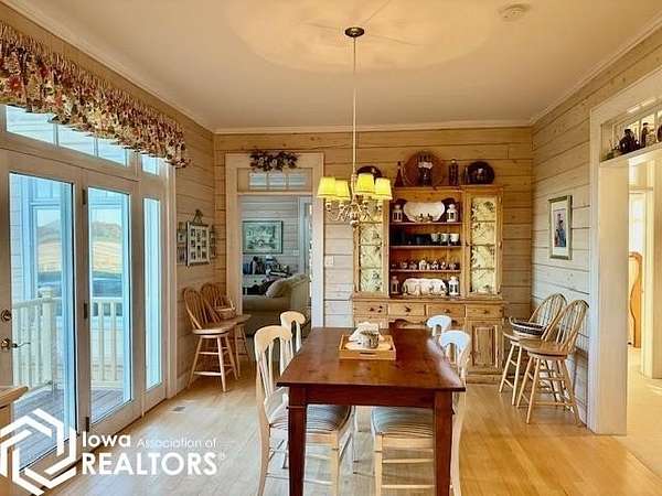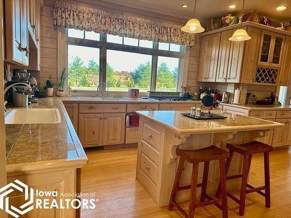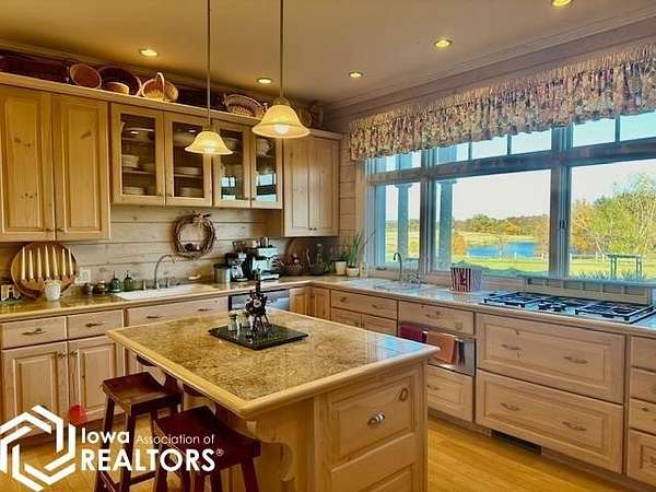 This Maharishi Vastu log home offers elegance and country living combined, located on 3 acres of land only 10 minutes from the Fairfield Square. There is over 5000 square feet of comfortable living space with vaulted ceilings in an expansive living room and a spacious kitchen and Dining Room. Three ample-sized bedrooms on the main level include a primary bedroom ensuite with a full bath and office room, and 2 additional bedrooms, one with full bath access, and one with a 1/2 bath. A Den and bonus/meditation room complete the main level. The upper level offers an open office area and 2 bedroom suites with their own ensuite bathrooms. The lower level has space galore with an additional, very large family room, and lots of side rooms for creative, potential, usable space. This elegant home is a "Must See" !!