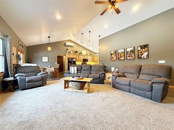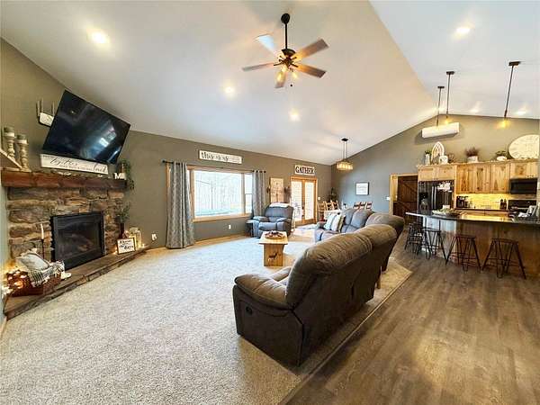 Welcome to this beautifully maintained 4 bedroom, 2 bathroom home built in 2018, perfectly situated on a peaceful and private 20-acre setting. This property offers the ideal blend of comfort, space, and country living, with German Creek running through the land-perfect for enjoying your own trout fishing right at home. Step inside to an inviting open-concept layout designed for easy main-level living. The spacious living room features a stunning stone gas fireplace, creating a warm and cozy focal point. The kitchen and dining areas flow seamlessly, making this home perfect for both everyday living and entertaining. The primary suite offers a relaxing retreat with a large walk-in closet and an ensuite bathroom complete with a walk-in shower. Three additional bedrooms provide ample space for family, guests, or a home office. Enjoy the outdoors from the covered front porch-ideal for taking in beautiful sunrises-or the stamped concrete back patio, perfect for relaxing or entertaining. The expansive yard offers plenty of room to roam and enjoy the peaceful surroundings. Car enthusiasts and hobbyists will appreciate the attached heated 3-car garage, offering abundant space for vehicles, storage, or a workshop. A poured 28 x 36 concrete pad is already in place for a future detached outbuilding if desired. The home also features a new roof installed following the 2023 hailstorms, and has been PRE-INSPECTED for added peace of mind.