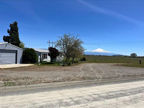 Schedule an appointment to tour this well-maintained manufactured home on 10 acres with unobstructed views of Mt. Shasta and only minutes from downtown Yreka! Tons of storage and workspace in the oversized garage/workshop and large carport area. Enjoy the lovely landscaping, beautiful open skies and peaceful pastures from the covered front porch and rear deck. The kitchen, laundry and dining rooms have brand new Flooring. A new Water Heater was installed in 2025 as well. In 2022, this home received a 25-year Roof, Double Pane Windows, a kitchen skylight was added, new exterior paint and the Front and Back Decks were refurbished. There are two wells to support the property. New pump and automatic shut off valve installed recently. Home Inspection Reports are available for review. Home is move-in ready; however, the Bathrooms need updating. Workshop has some upgraded electrical and exhaust features.