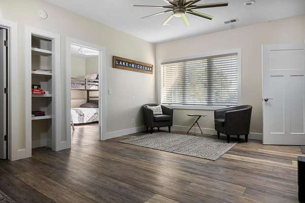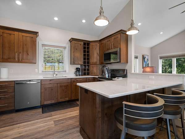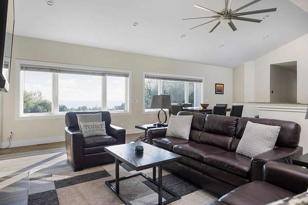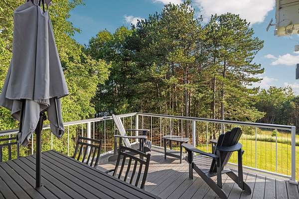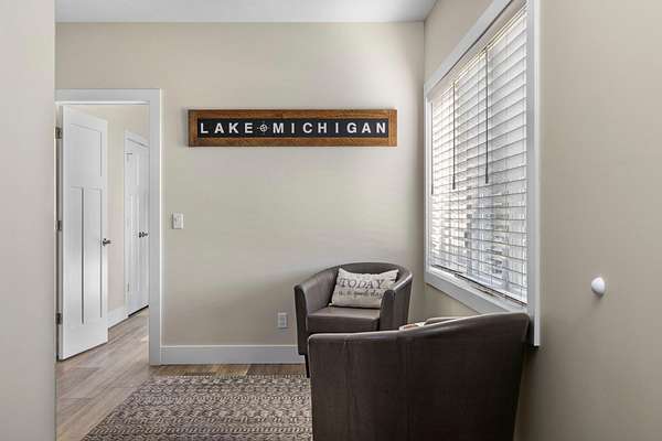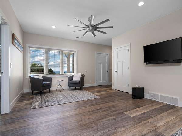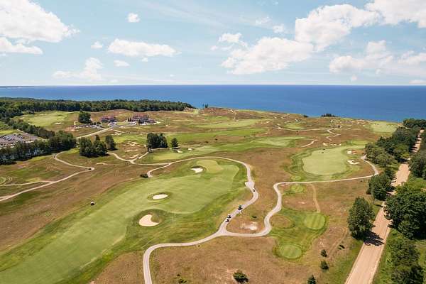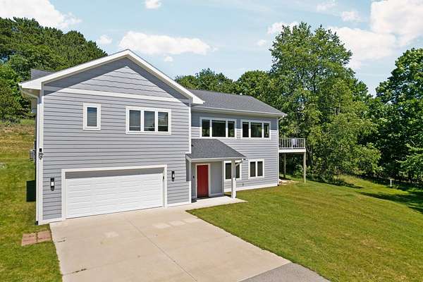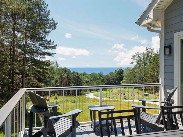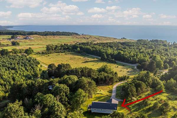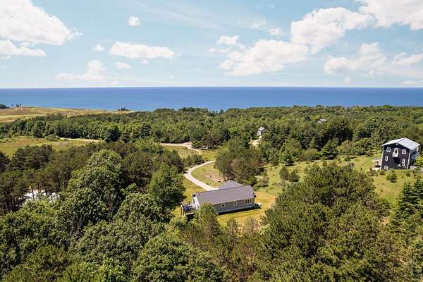 New in 2021, this 4 bedroom, 3 full bath home has stunning Lake Michigan views! 3 1/2 acres. Around the corner from Arcadia Bluffs, Arcadia Bluffs South and the new 12 hole course (The Dozen)! Plus fishing, hunting, boating, skiing, snowmobiling and hiking all easily accessible. This gorgeous home is a vacation rental when the owner is not enjoying it himself. All set, with included furnishings, to continue if desired. Abundant windows add light & showcase the amazing lake view. 2 beds, full bath & family room in the front walk-out. Main floor is open great room, high ceilings, linear gas fireplace, guest bedroom, hall bath, laundry & primary bedroom w/private bath. Fabulous kitchen w/quartz countertops, undercabinet lighting & stainless appliances, Deck for sunsets!