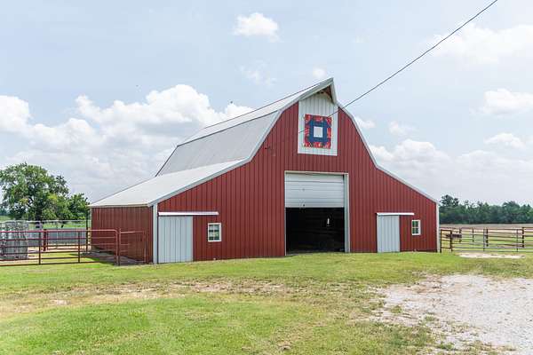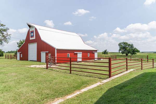The property has three distinct outbuildings that coordinate and look sharp together. The first is the original barn on the property that has had the outside metal updated and now the red color shines like it was new. The interior has a tack room and box stalls on both the north and south side. The middle is open and can hold stacked bales from floor to ceiling.