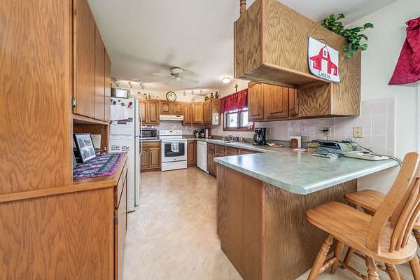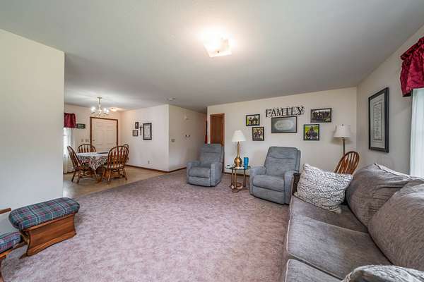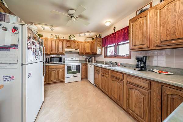 The home consists of three bedrooms and two baths spread across 1456 square feet of upstairs finished living space and an unfinished basement with styrofoam and steel basement walls that create an unmatched insulation barrier helping to keep utility bills low. The dining area is large and easily fits a table big enough to accommodate six adults. Each bedroom features a large closet with the master bedroom having two. The kitchen provides ample counter space for prepping those big harvest meals enjoyable. The laundry room/mud room has an integrated sink, which makes cleaning up easy. The living room has a large picture window that currently looks out at hummingbird feeders that are extremely active throughout the summer months with many different species of hummingbirds darting in for nourishment. While the basement is unfinished, it does have a sink, stove and some cabinetry installed that makes canning and other activities a breeze. The home also boasts an attached, oversized, one car garage that is big enough to hold a large vehicle and any tools you may need. It is currently holding three large chest freezers alongside an SUV, so there is no shortage of storage space or electricity capacity. The home has impact resistant shingles on the roof and concrete siding.