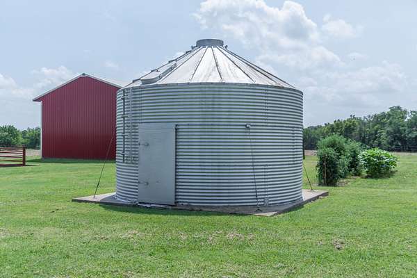 Finally, there are a number of round grain bins that are no longer used to store grain, but are rather used for any overflow storage needs.