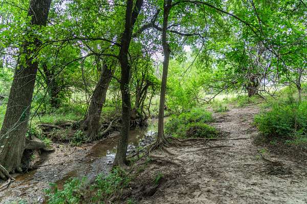 The middle of the ranch features a 53.4 acre pasture that includes a deep 1 acre pond and spring fed creek that runs continually, even through the most recent drought. The creek water runs clean and clear and it is lined with tall, mature timber, made up of native elm, cottonwood, oak and other deciduous tree species. The pasture has been extremely well maintained and is clean of weeds and brush.