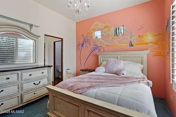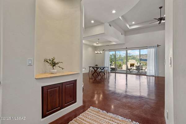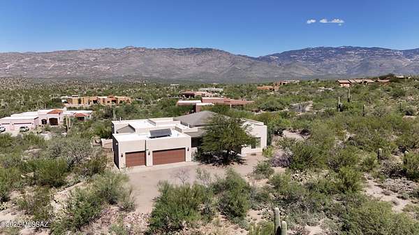 This thoughtfully designed home offers peace, privacy, and a strong connection to the outdoors. 3 Bedrooms & Bonus room with built-ins. Expansive windows frame stunning mountain and desert views, while the open-concept layout is ideal for everyday living and entertaining. The private primary suite includes patio access, and the split floor plan includes a Jack and Jill bath between secondary bedrooms and a flexible room perfect for an office, gym, or guest space. Outside, enjoy multiple shaded patios, desert landscaping, a tranquil water feature & outdoor shower. A 3-car garage provides additional storage and a solar water heater for efficiency. Located in gated Coyote Creek with equestrian facilities, sports courts, and direct access to scenic trails and Saguaro National Park, WOW!