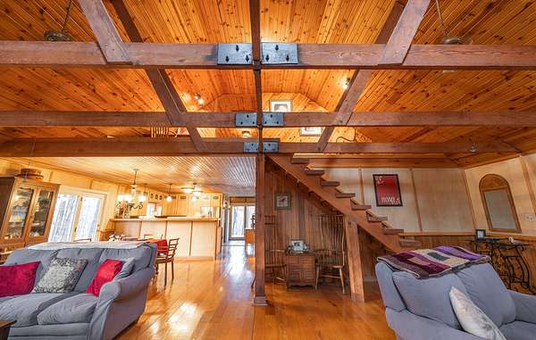 Welcome to your private sanctuary in Williamson County, IL. This lodge-style home, set on 40 acres, features spacious rooms, exposed beams, and a deck offering stunning views of the stocked 10-acre lake. The chef's kitchen is perfect for culinary enthusiasts. The property includes a mix of open ground and managed timber, providing a perfect blend of natural beauty and functionality.