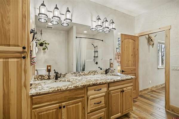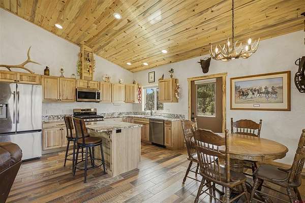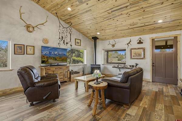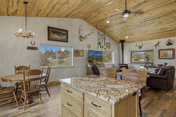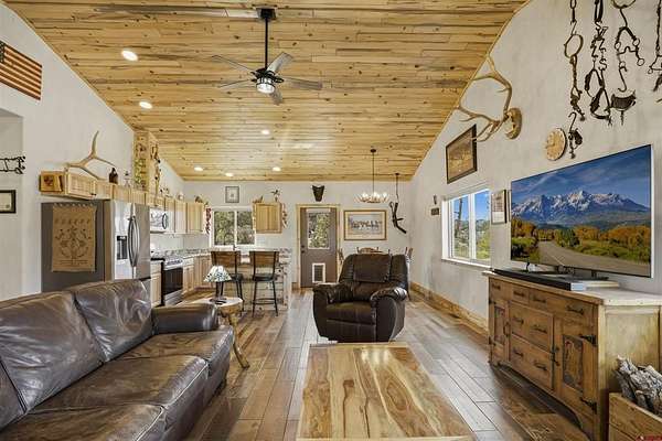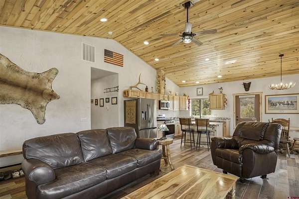 Marcie Lewis, Jann C Pitcher Real Estate, C: 970-759-8672, marcie@janncpitcher.com, www.crenmls.com: No HOA and located in desirable Pagosa Meadows 1 this custom home was built in 2023. This 3 bedroom home sits on approximately 6.24 Acres to give you elbow room. Experience elevated rural living with custom craftsmanship, acreage, and room for horses in Pagosa Springs This beautifully crafted 3-bedroom, 2-bath custom home on 6.24 acres showcases quality construction, thoughtful design, and exceptional upgrades throughout. The seller spared no expense incorporating high-end materials, custom finishes, and practical improvements that elevate this property well beyond typical new construction.Inside, the home welcomes you with stunning blue pine tongue-and-groove vaulted ceilings, elegant hand-applied Venetian plaster walls, and rich elm interior doors, creating a warm mountain aesthetic with refined craftsmanship. The open living space is both inviting and functional, featuring granite countertops, stainless steel appliances, and a well-planned kitchen designed for everyday living and entertaining alike.Comfort and efficiency were clearly priorities during construction, with spray foam insulation, forced air heating, central air conditioning, and a highly insulated garage door providing year-round comfort in every season. A cozy wood stove adds both charm and supplemental warmth during Colorado winters.The attached 26' x 26' garage with 10-foot ceilings offers generous space for vehicles, storage, and outdoor gear, while thoughtful infrastructure throughout the property adds convenience and long-term functionality.Outside, the property has been carefully developed for horses, livestock, or hobby ranch living with three fenced pastures, cross fencing, a running shed, and arena area already in place. Additional improvements include RV-ready hookups, extra parking areas, two sewer clean-outs, and frost-free spigots, making the property both versatile and practical.Durable exterior materials including a metal roof and metal wainscoting provide long-lasting protection while complementing the home’s mountain character. From the covered porch and outdoor deck, enjoy mountain and valley views and the peaceful setting that makes rural Colorado living so special.Despite the private feel, the property is conveniently located just minutes from downtown Pagosa Springs, providing easy access to dining, shopping, recreation, and year-round outdoor adventure including nearby Wolf Creek Ski Area.With no HOA, usable acreage, quality construction, and extensive improvements already in place, this property offers a rare opportunity to own a turnkey horse property and custom home in one of Pagosa Springs’ most desirable rural neighborhoods.