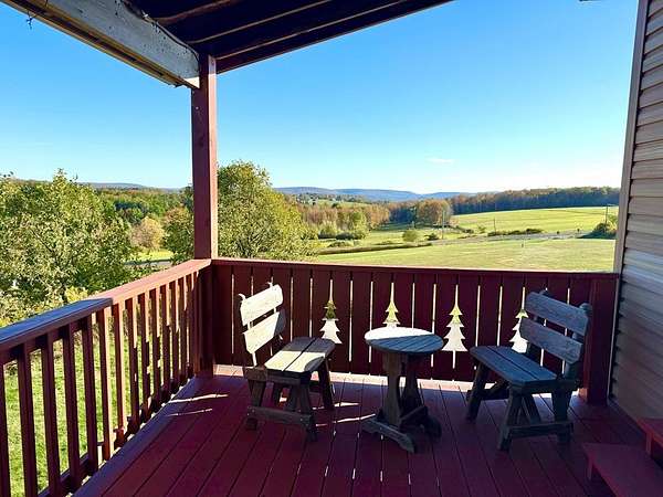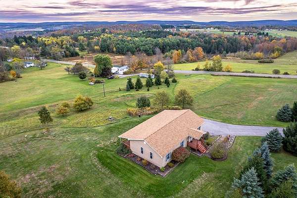 Est $2,545/moOutstanding 30 mile views from this custom 2006 Brookside home! Spacious and attractive with open floor plan and cathedral ceilings. 3 bedrooms, 3 bathrooms, and large lower level family room that walks out to the patio. Radiant heated floors on all levels. Amazing full length covered porch for entertaining! All this on 4 acres only 3/4 mile to the Tyoga Country Club and only 2 miles to downtown charming Wellsboro, Pennsylvania!