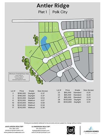 Antler Ridge Plat 1 Development with wooded WALKOUT and DAYLIGHT Executive Lots. Conveniently located between Ankeny and Polk City, you will love being so close to everything the outdoors has to offer. With the area you will find Saylorville Lake, boat docks, picnic and beach areas, Big Creek and Jester State Parks. There are three golf courses within minutes. The Neal Smith Trail nearby gives you access to biking, running or walking trails and the massive Des Moines Trail System. Ankeny Schools. Bring your own builder. Come build your dream home in ths new community. Electric: MidAmerican, Gas: MidAmerican, Water: Polk City. Internet is Lumen/Centurylink.