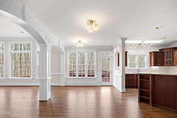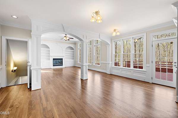 Stunning custom-built home on 1.6 acres with wooded views! A brick veneer exterior welcomes you into a grand two-story foyer with double front doors and transom. The main level offers an office with French doors, transom, crown molding & ensuite full bath! Flow into the formal living room with columns and adjacent formal dining room showcases a tray ceiling, crown molding, wainscoting, chair rail, bay window & detailed hardwood flooring! The gourmet kitchen is designed for both function & style with quartz countertops, tile backsplash, under-cabinet lighting, walk-in pantry, double oven, gas cooktop, stainless steel appliances, skylights & dual sinks! The family room features vaulted ceiling, built-in bookcases, storage & a gas fireplace! Abundant windows throughout the main level provide exceptional natural light! The primary suite offers a tray ceiling, sitting area with gas fireplace & built-ins & a Juliet balcony with wooded views! The spa-like bath includes a whirlpool tub, tiled walk-in shower, dual vanity, skylight & private water closet, along with a two walk-in closets! All of the secondary bedrooms offer a different experience! - the second bedroom has a walk-in closet and ensuite bath. The third and fourth bedrooms share a Jack-and-Jill bath with dual vanity! Not to be outdone by the other bedrooms, the fourth bedroom features a cozy window seat and ample closet space! Bonus room with built-ins & vaulted ceiling ready for more entertaining and so much more! The laundry room includes additional storage, utility sink & crown molding. The finished walk-out basement is ideal for entertaining, featuring a gas fireplace, tray ceiling, built-ins, wainscoting, wet bar, dining area, full bath, theater room & flexible space for a gym or gaming area, plus 350 sq ft of unfinished workshop space! Still need more space? The walk-up attic provides excellent storage and is plumbed for a future half bath. Outdoor living includes a two-tiered deck & covered patio, all in a private wooded setting. The 3-car garage features epoxy flooring and additional storage. This home offers an exceptional combination of space, craftsmanship & luxury living in a serene setting. In addition, our preferred lender is offering up to 1% in lender credit, which can be applied toward closing costs or to help reduce the interest rate.