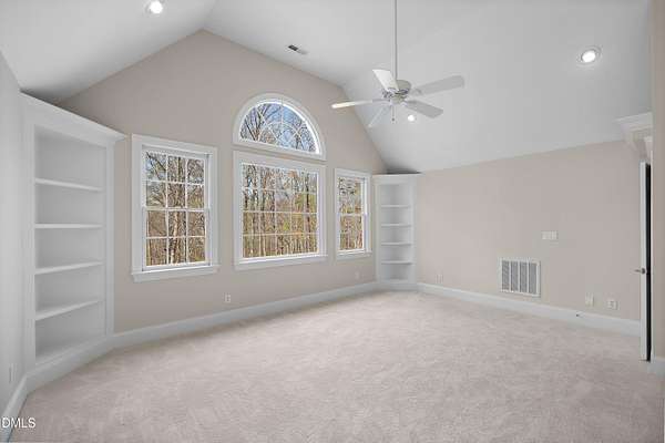 - Bathtub/Shower Combination, Bookcases, Breakfast Bar, Built-In Features, Ceiling Fan(s), Crown Molding, Double Vanity, Dual Closets, Entrance Foyer, High Ceilings, Kitchen Island, Pantry, Quartz Counters, Recessed Lighting, Separate Shower, Tray Ceiling(s), Vaulted Ceiling(s), Walk-In Closet(s), Walk-In Shower, Water Closet, Wet Bar, Whirlpool Tub