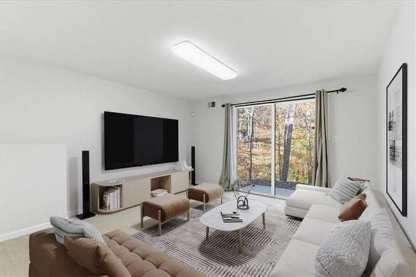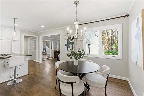 Experience the perfect blend of luxury, privacy, and location--a rare opportunity to own a wooded East Cobb sanctuary within one of metro Atlanta's most desirable neighborhoods and top-rated school districts. Welcome to your very own private wooded retreat, an elegant 4 bedroom, 4.5 bath chalet secretly nestled within an exclusive enclave of only four homes in the highly coveted Walton High School district. Set on over 2 acres of beautifully landscaped grounds, this residence offers over 3,600 square feet of refined living space, blending warm natural finishes with modern luxury in a serene, nature-filled setting. A light-filled foyer provided by skylights welcomes you inside, giving way to an oversized, centrally located sunken living room lined with glass doors that flood the space with natural light and offer picturesque views of the surrounding trees. This inviting centerpiece creates a seamless connection between indoor comfort and the tranquil outdoor landscape.