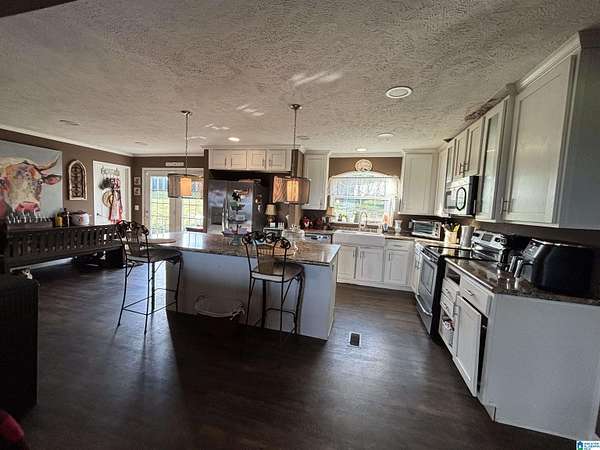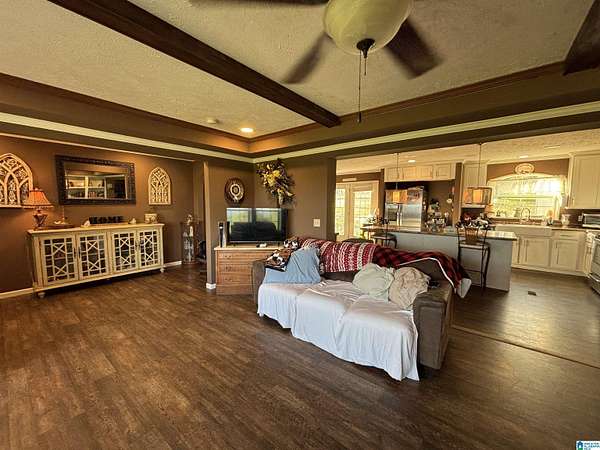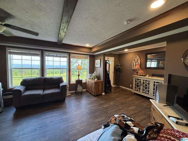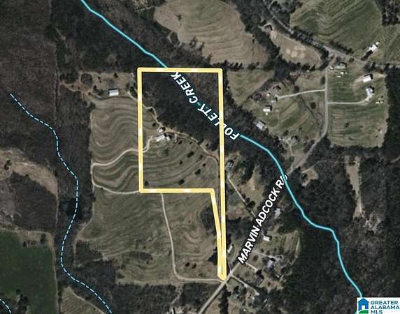 Welcome to Nectar, Alabama--a peaceful retreat near Birmingham, nestled between Hayden and the Locust Fork River off Hwy 160. Down a quiet country road lies 15+/- acres, a former terraced watermelon farm with rolling hills and Views. Climb gently to the highest point for sweeping, long-range mountain views--a perfect spot for your future home. Enjoy the natural beauty all around. 500 Ft. on Follett Creek. It offers multiple potential homesites, ideal for a family compound or quiet escape. Two 600 sq. ft. tube-framed steel buildings on concrete slabs provide workshop or storage space. The home is a 3BR/2BA 2016 Clayton Doublewide with a split-bedroom layout. The master and great room face south toward the mountain range. Two large pantries offer space for extra appliances. Need more room or land? Ask for details.